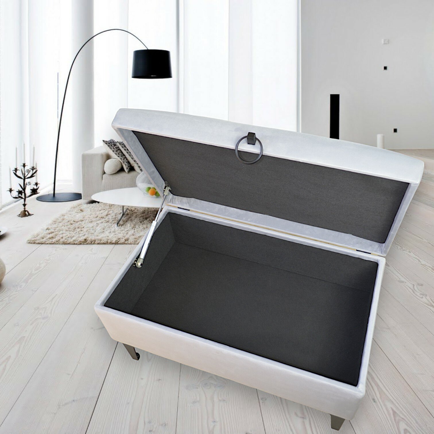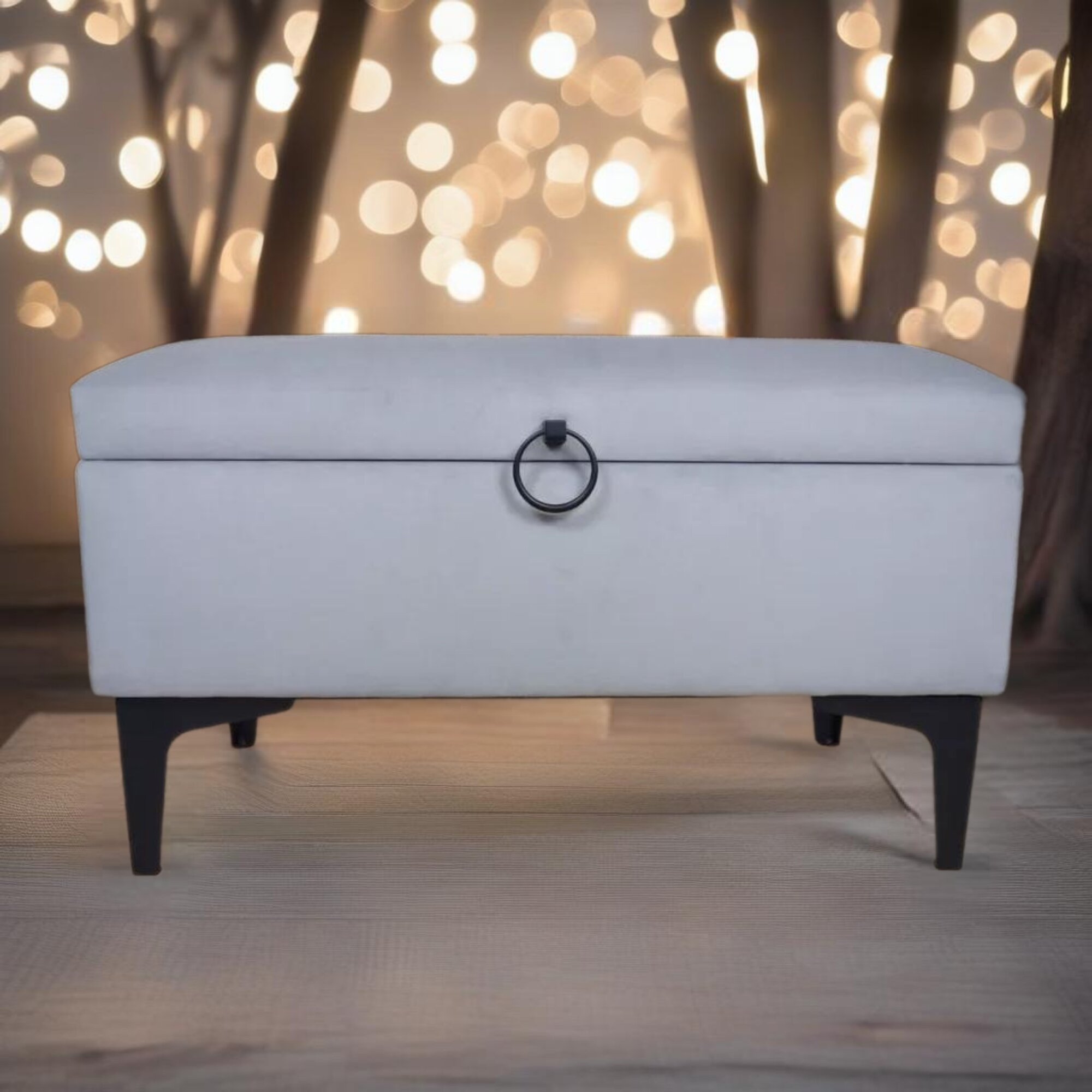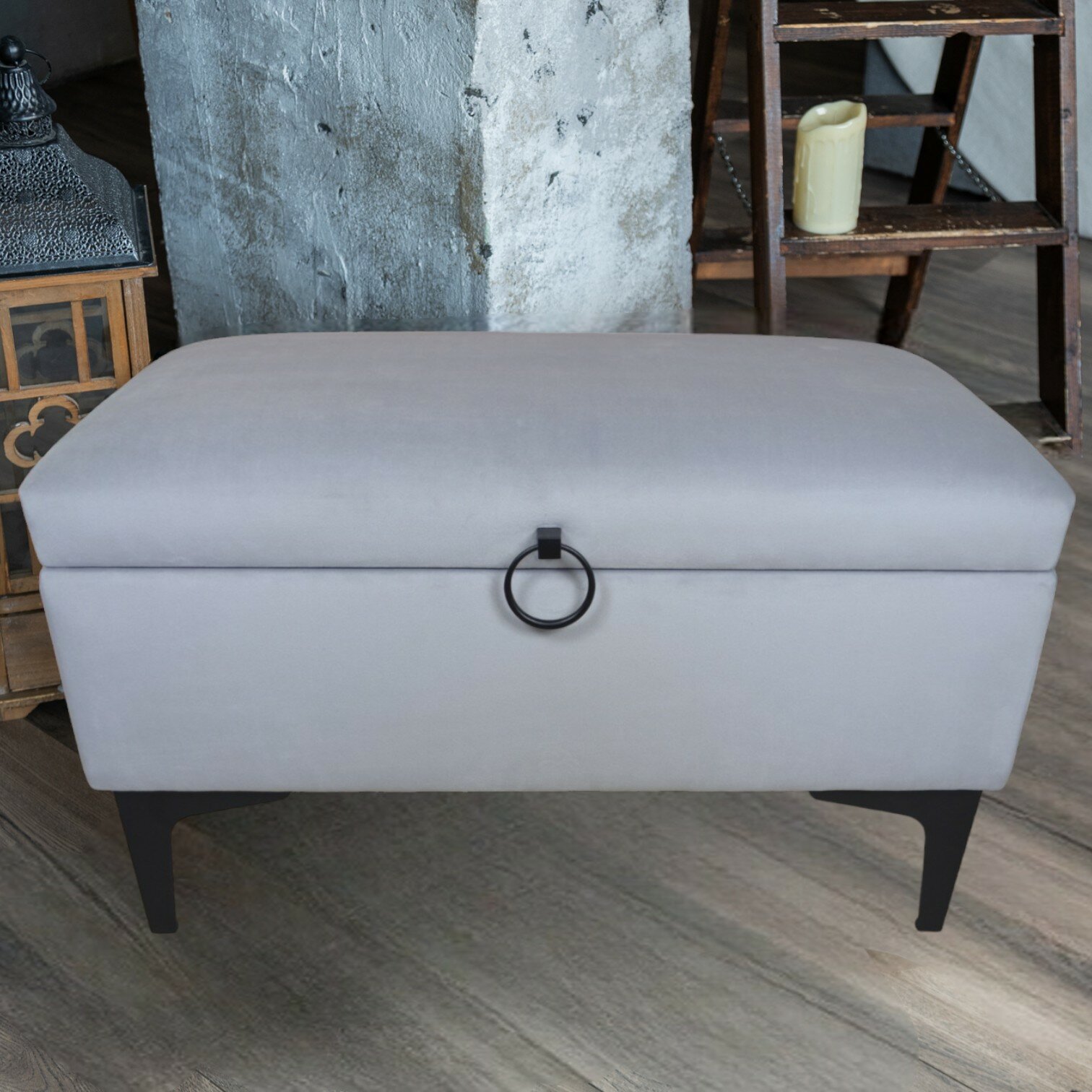 Банкетка серая однотонная из велюра на металлических ножках c ящиком для хранения пуфик в спальню и прихожую интересное: