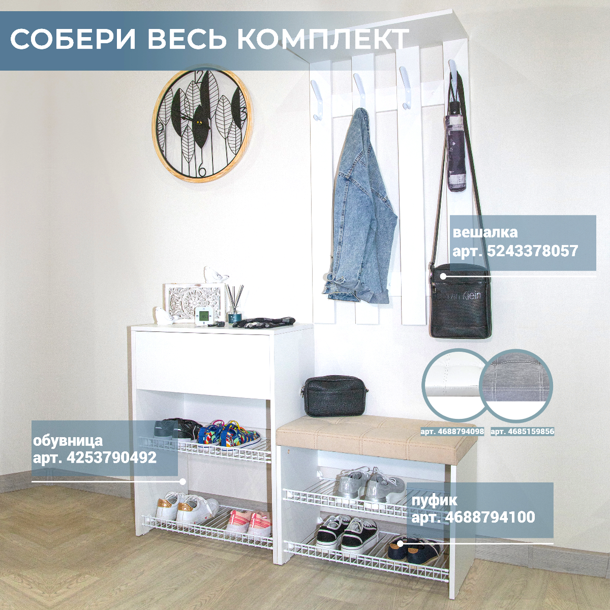 СохранитьПуфик в прихожую открытый с обувницей Puffsib А-3, белый/серый интересное: