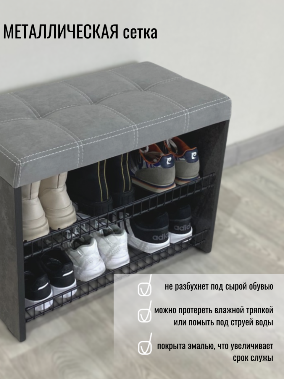Купить Пуфик в прихожую открытый с обувницей Puffsib А-3, цемент темный/серый