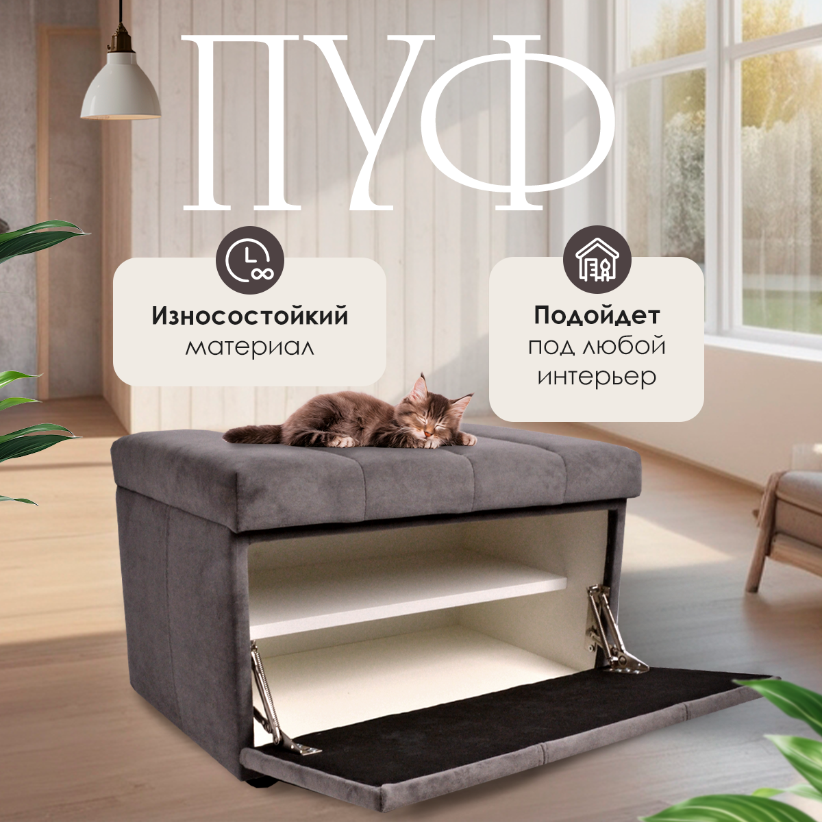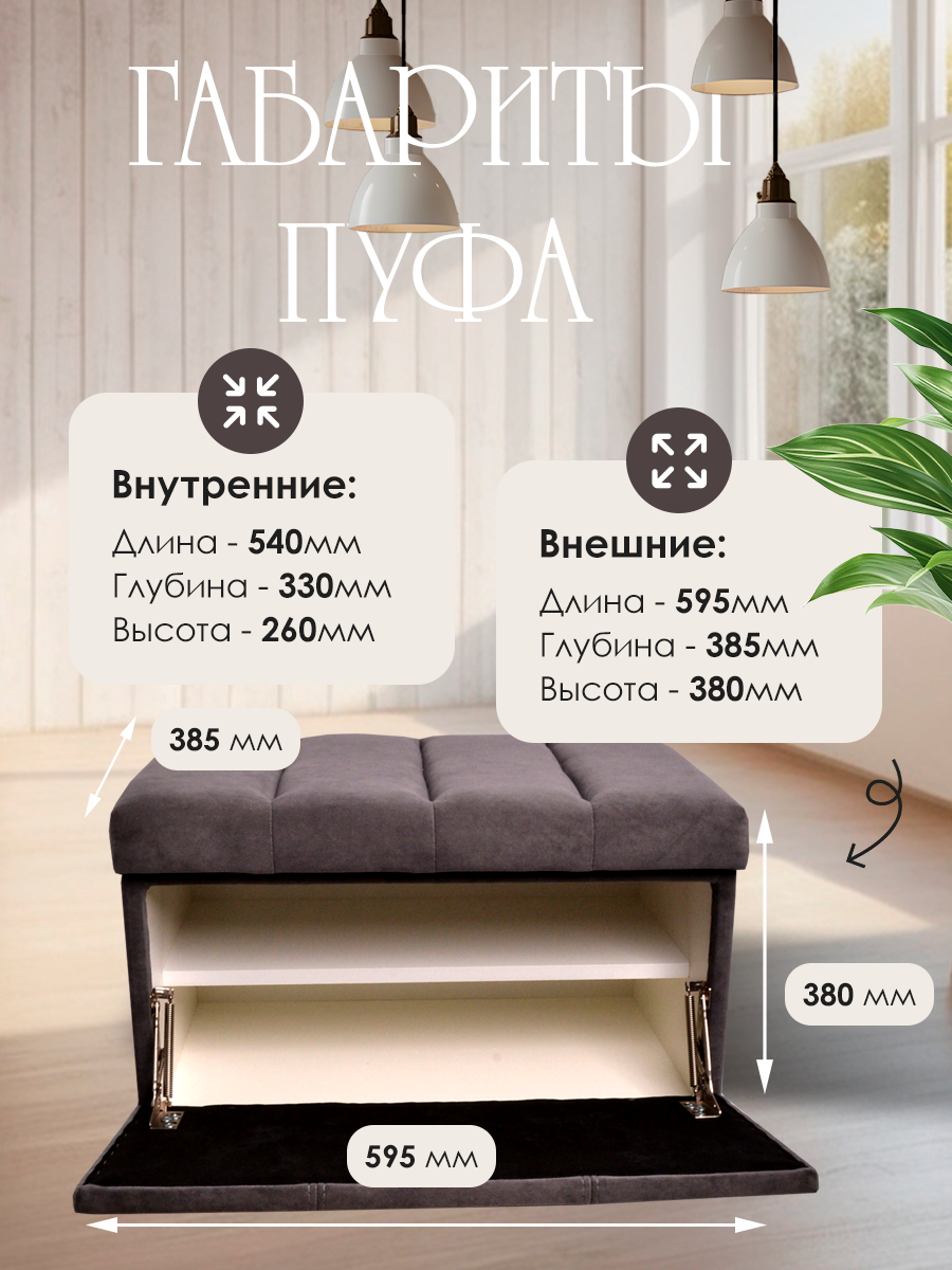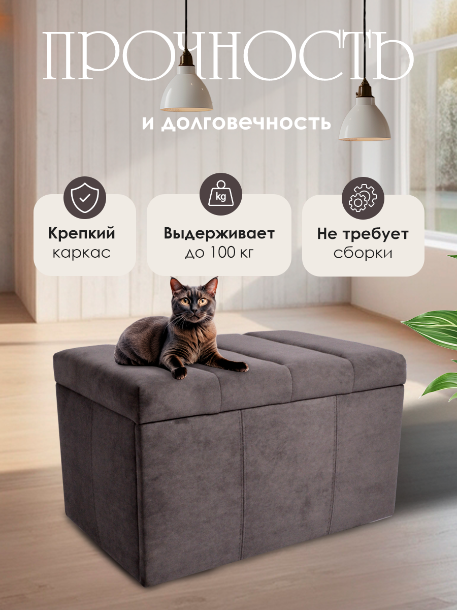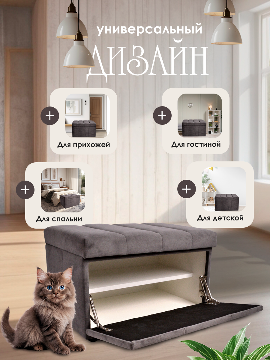 Обувница для прихожей с сиденьем закрытая полоса / Пуф мягкий велюр / Банкетка в прихожую Ультра Грей/серый 59.5*38.5*38 интересное:
