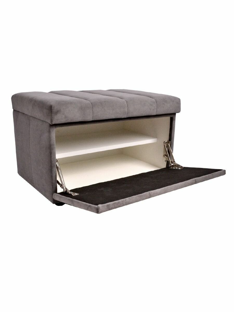 Купить Обувница для прихожей с сиденьем закрытая полоса / Пуф мягкий велюр / Банкетка в прихожую Ультра Грей/серый 59.5*38.5*38