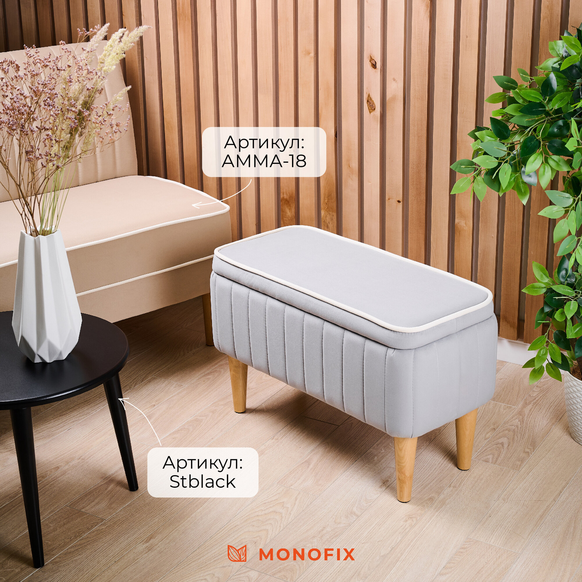 СохранитьБанкетка амма с ящиком для хранения, велюр, светло-серый (№52) интересное: