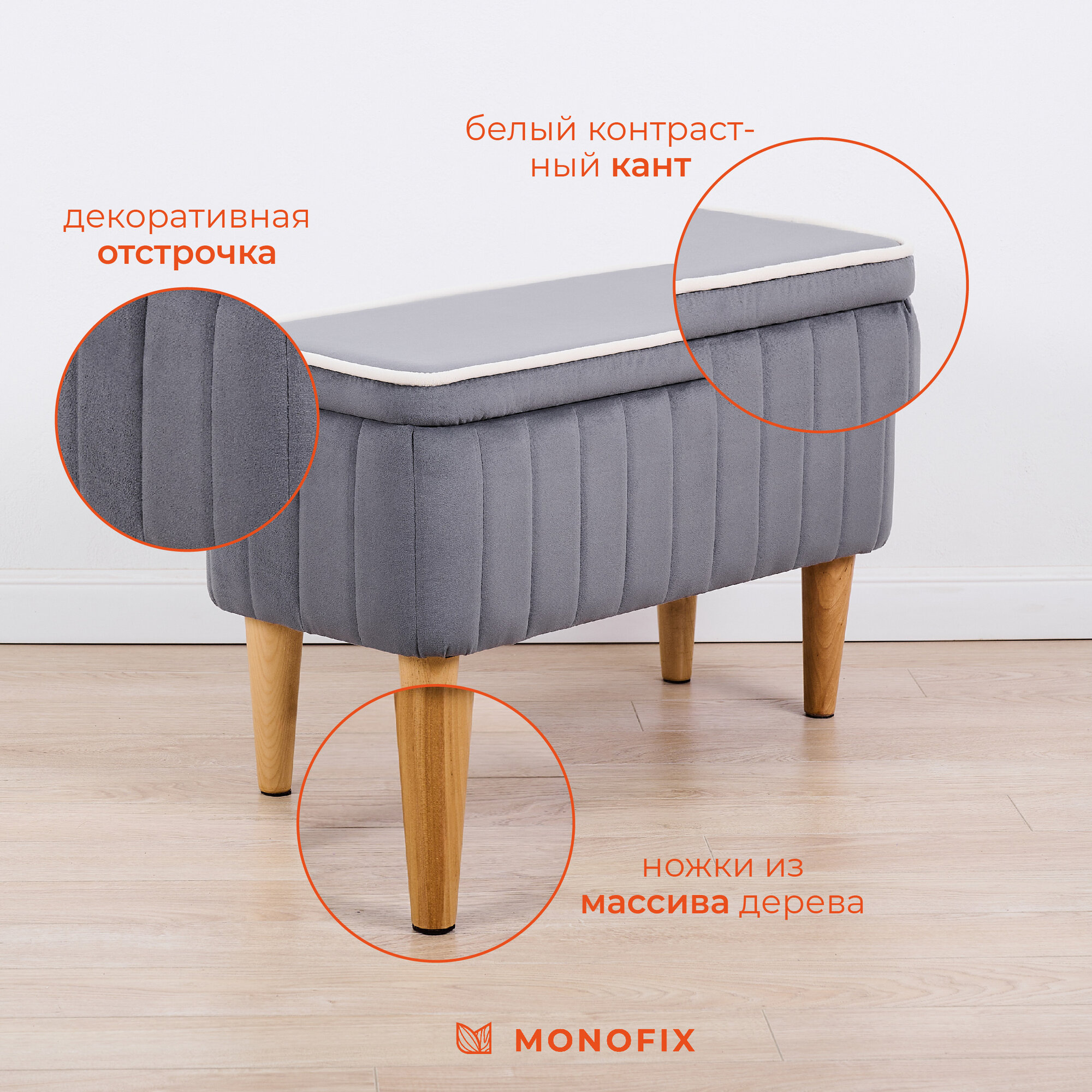 СохранитьБанкетка амма с ящиком для хранения, велюр, серый (№32) интересное: