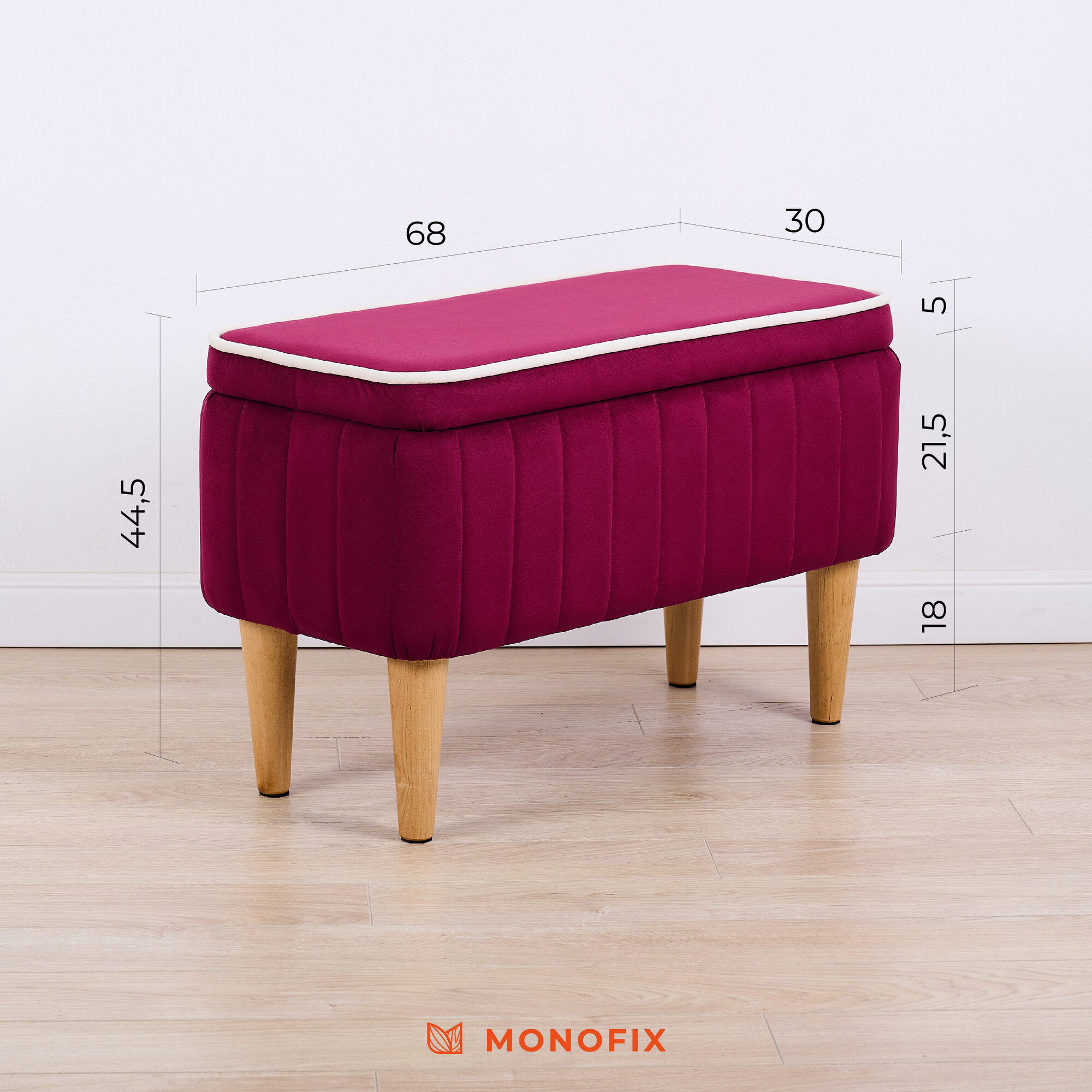 Купить Банкетка амма с ящиком для хранения, велюр, винный (№63)