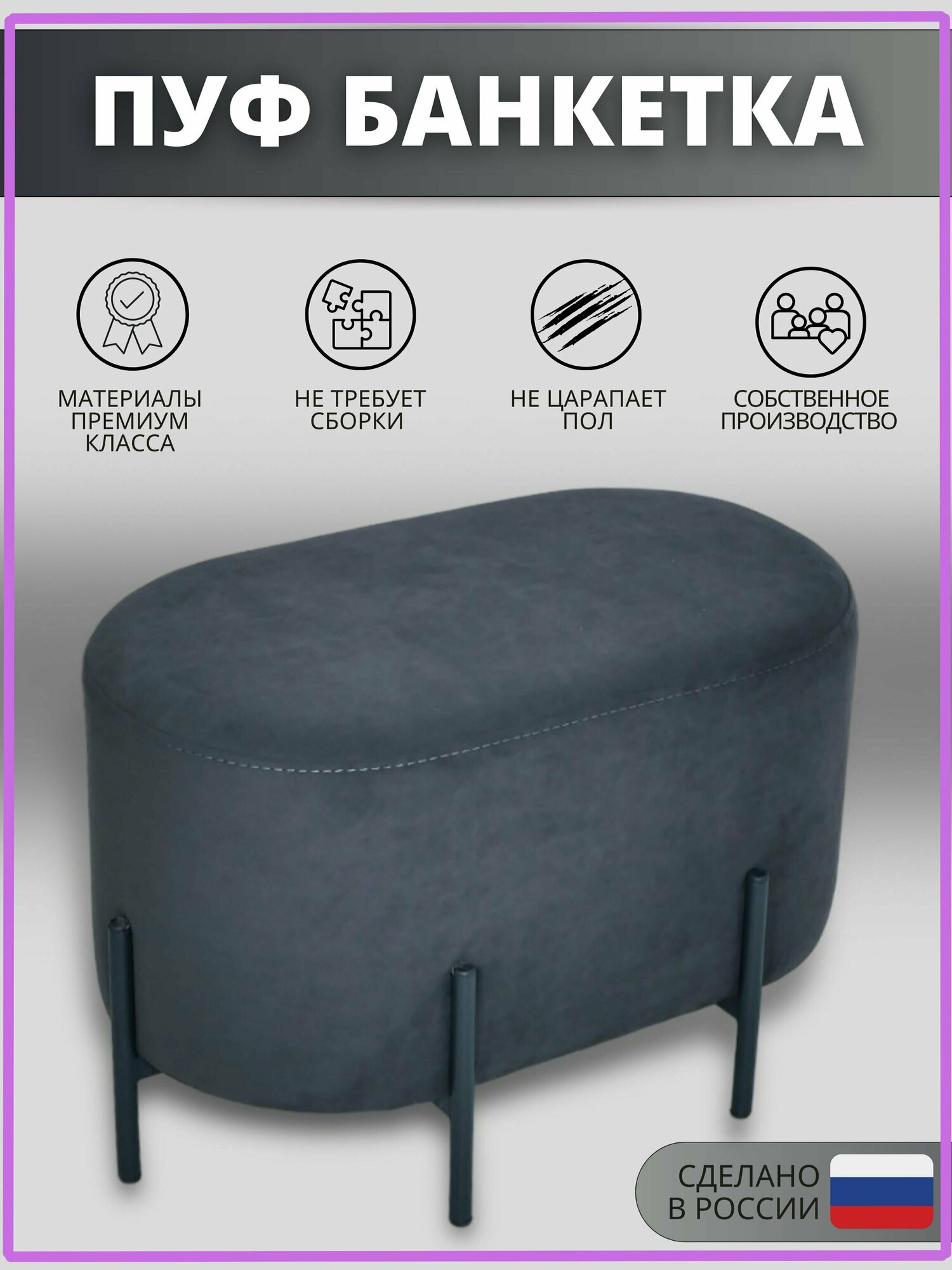 Банкетка SAMOYLOV MEBEL пуфик в прихожую, спальню черный. Бархатный велюр, 60*40*35 интересное: