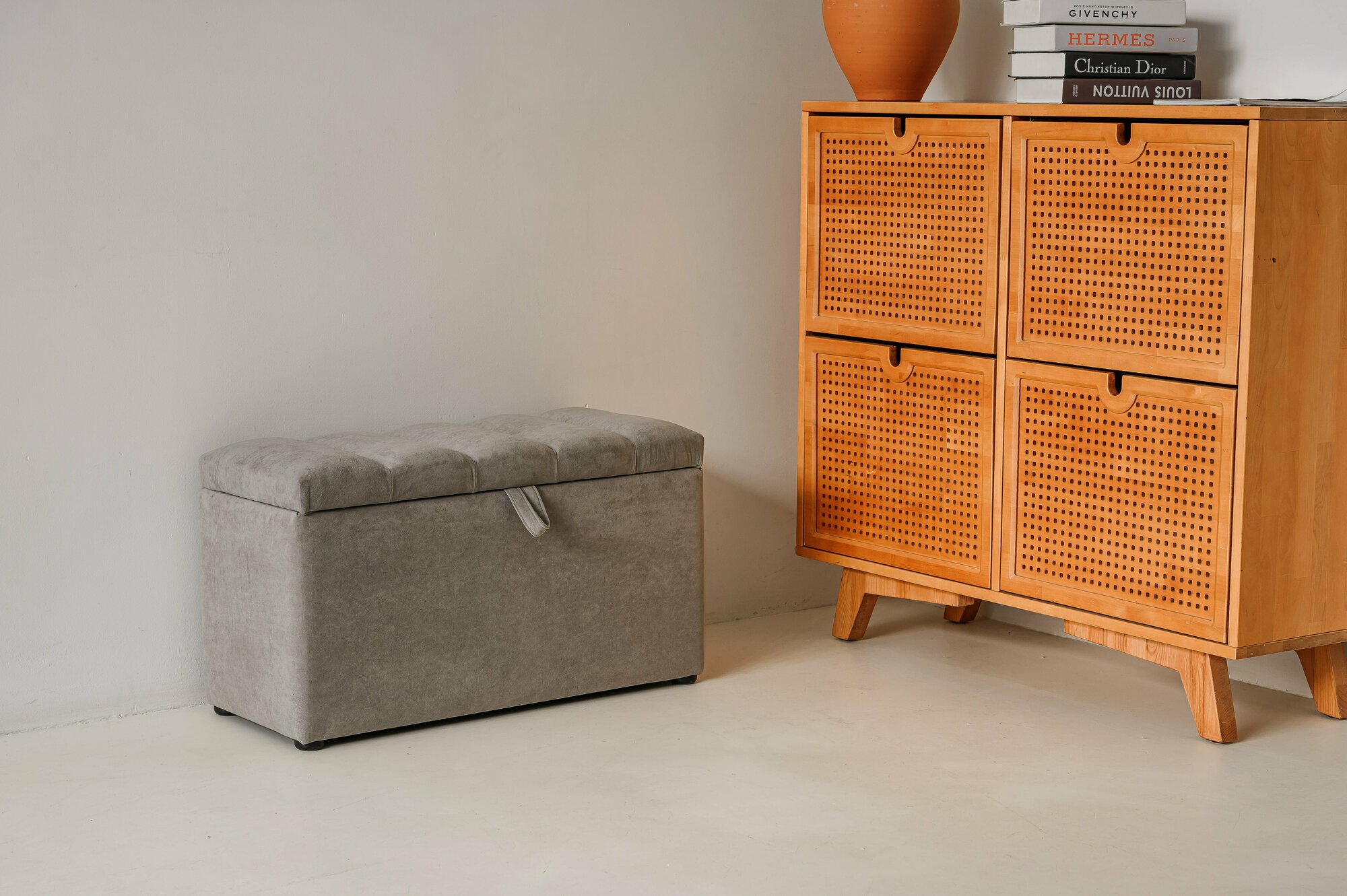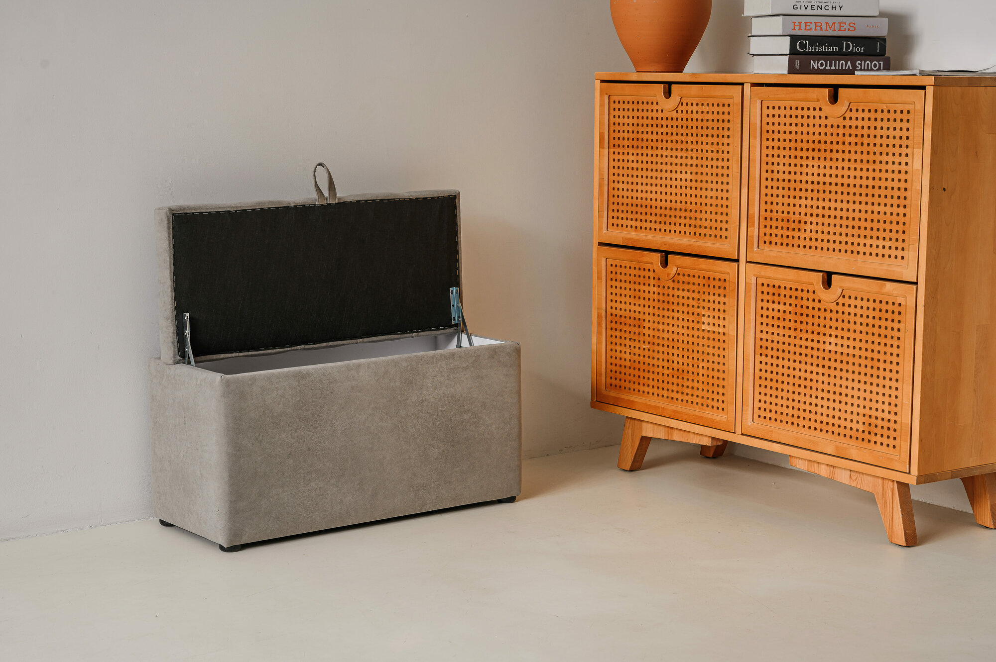 Пуф с коробом для хранения на ножках 111 Brendoss, пуфик с ящиком, банкетка, цвет серый, износостойкий велюр интересное: