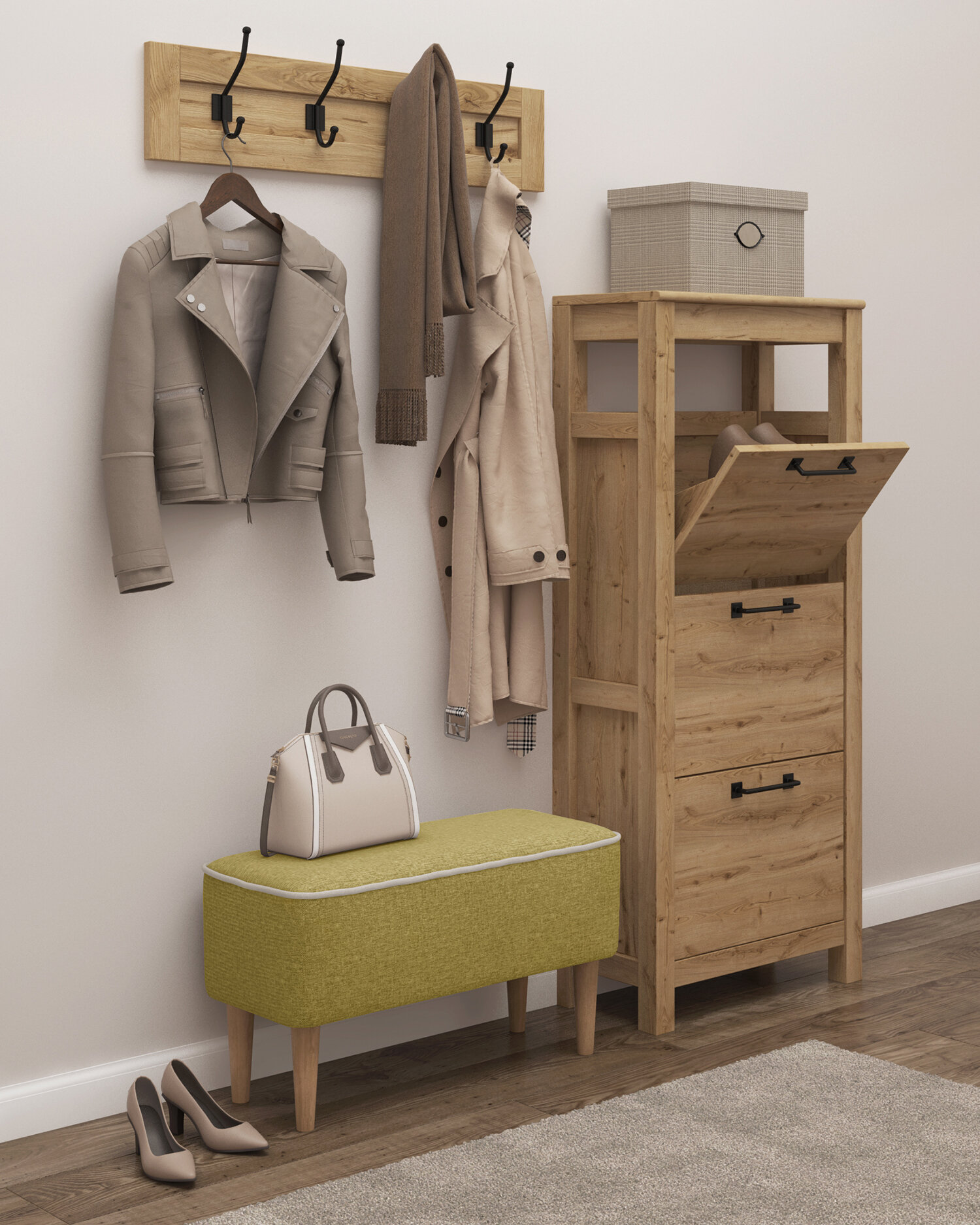 Банкетка DECORTA "Pititi", для прихожей, с ящиком, мебельный гобелен, 62х34х45 см