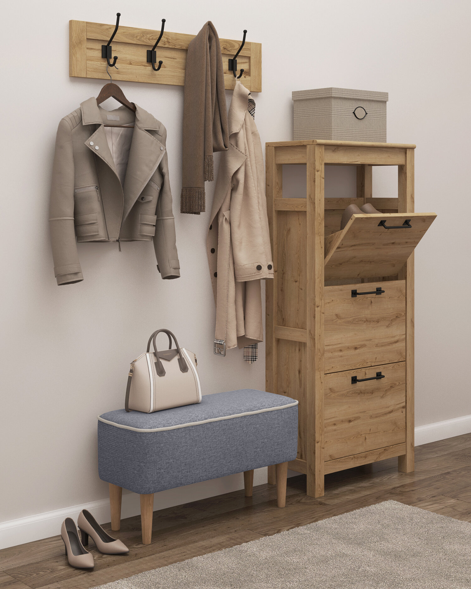 Банкетка DECORTA "Pititi", для прихожей, с ящиком, мебельный гобелен, 62х34х45 см