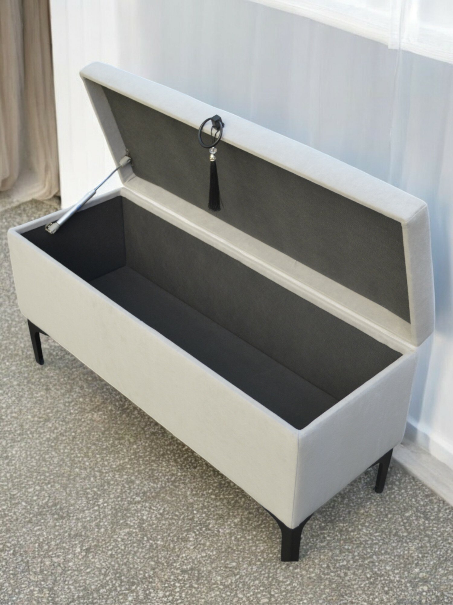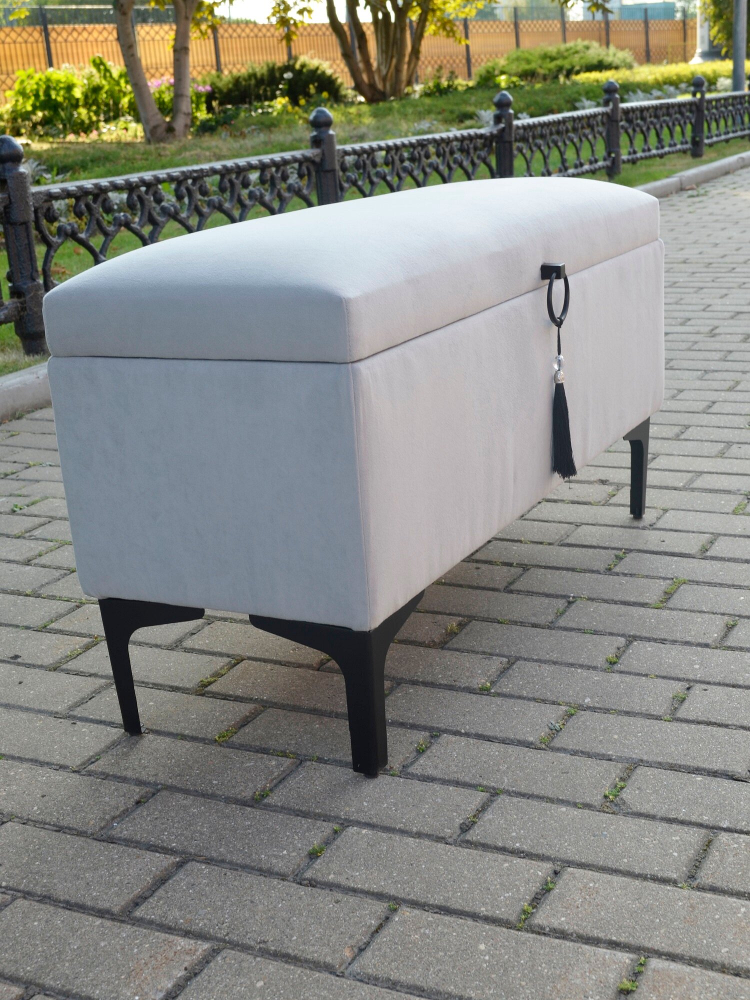 Банкетка из велюра на металлических ножках c ящиком для хранения пуфик в спальню и прихожую серая интересное: