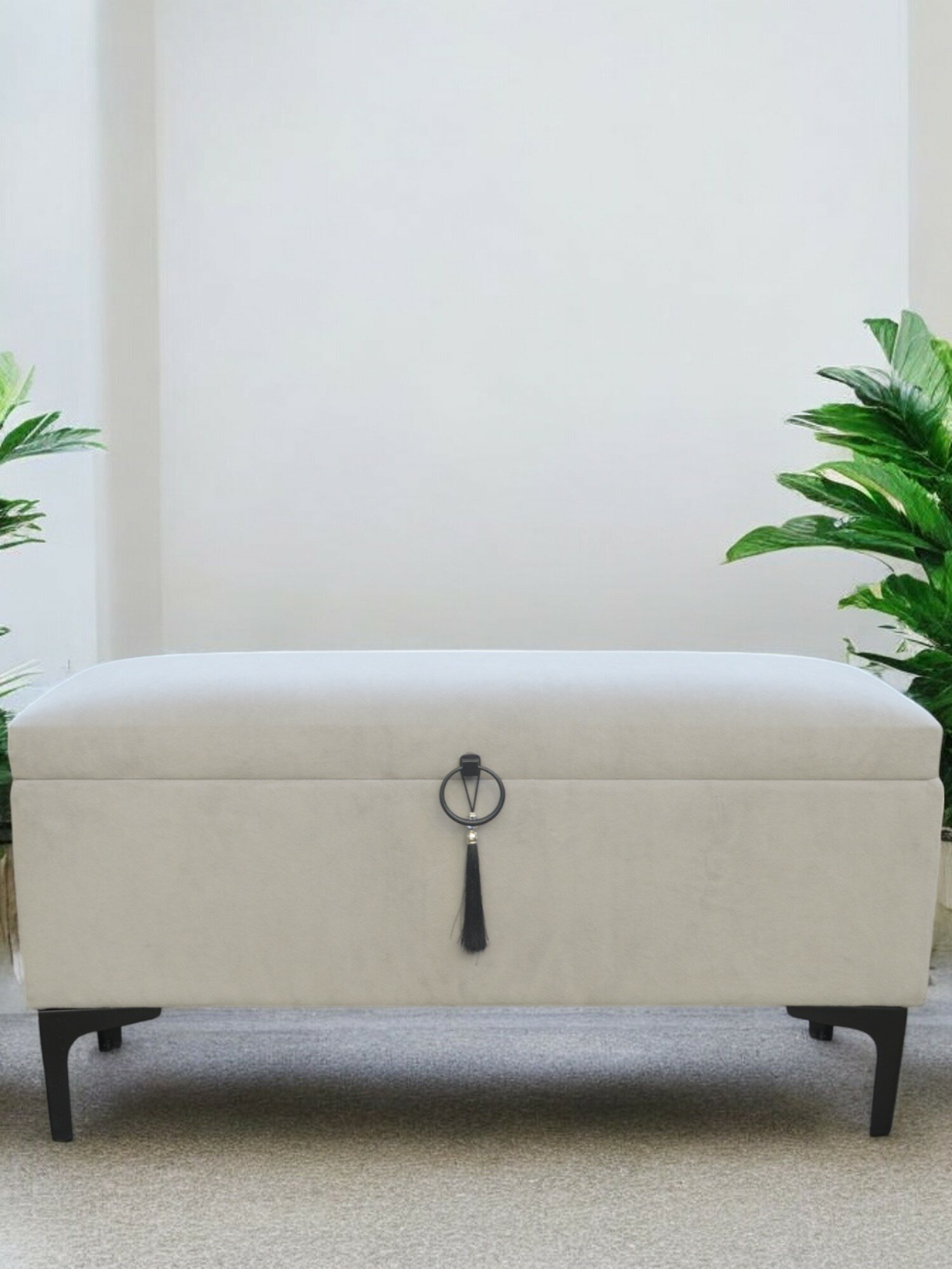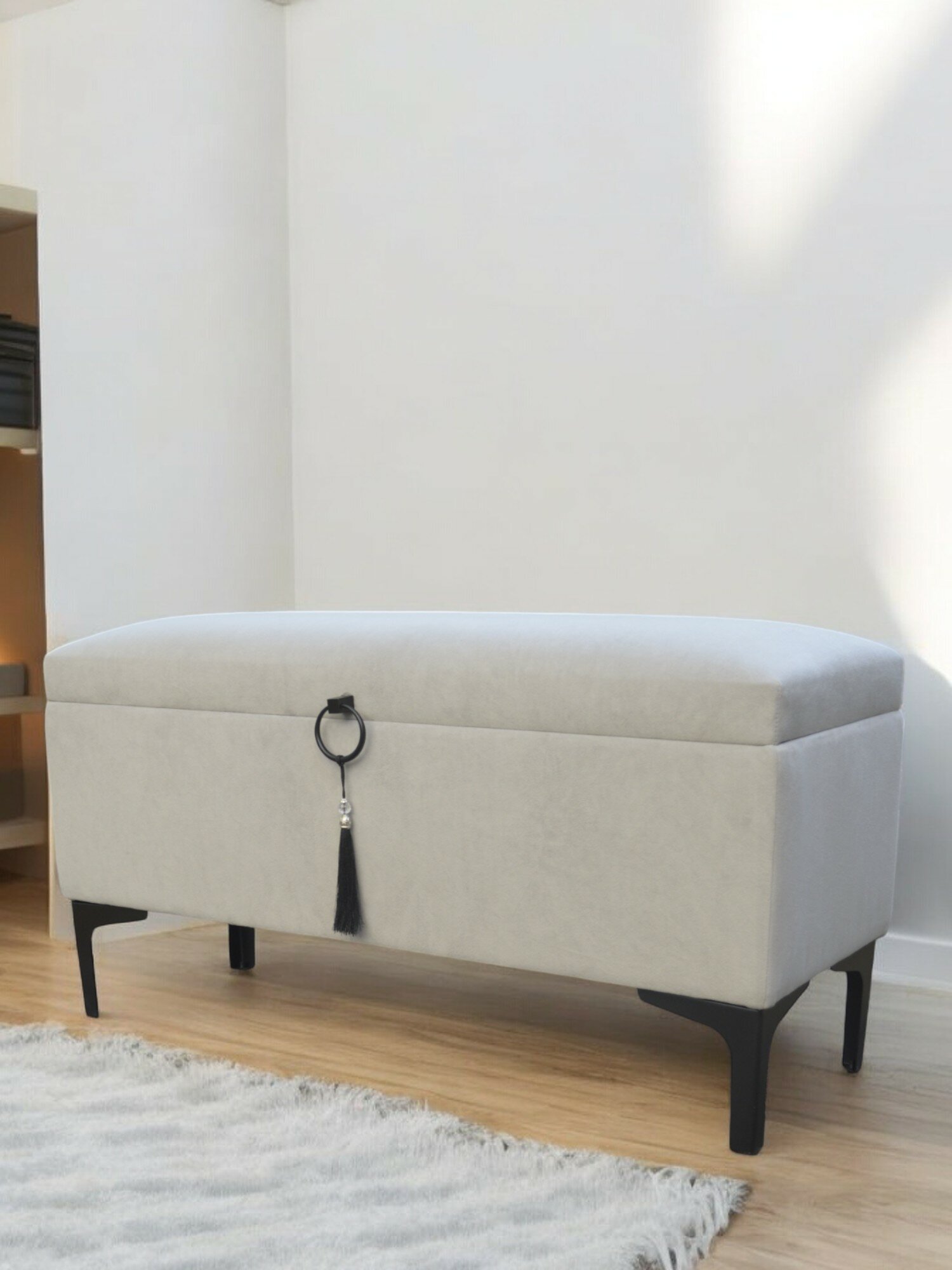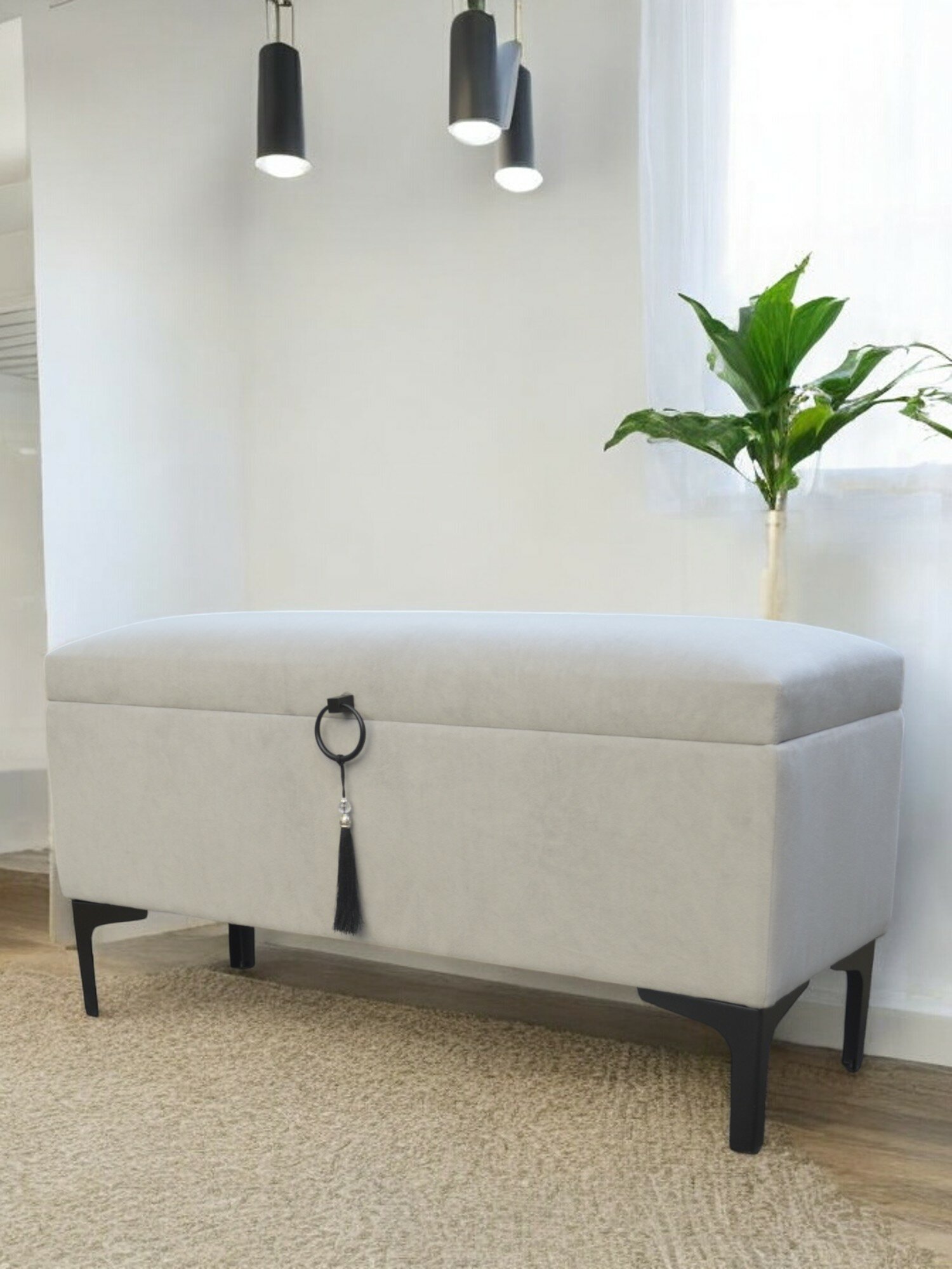 Купить Банкетка из велюра на металлических ножках c ящиком для хранения пуфик в спальню и прихожую серая