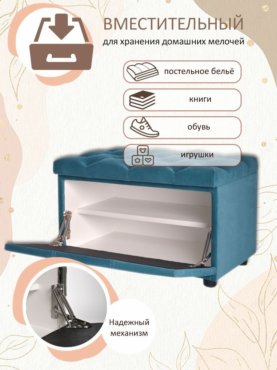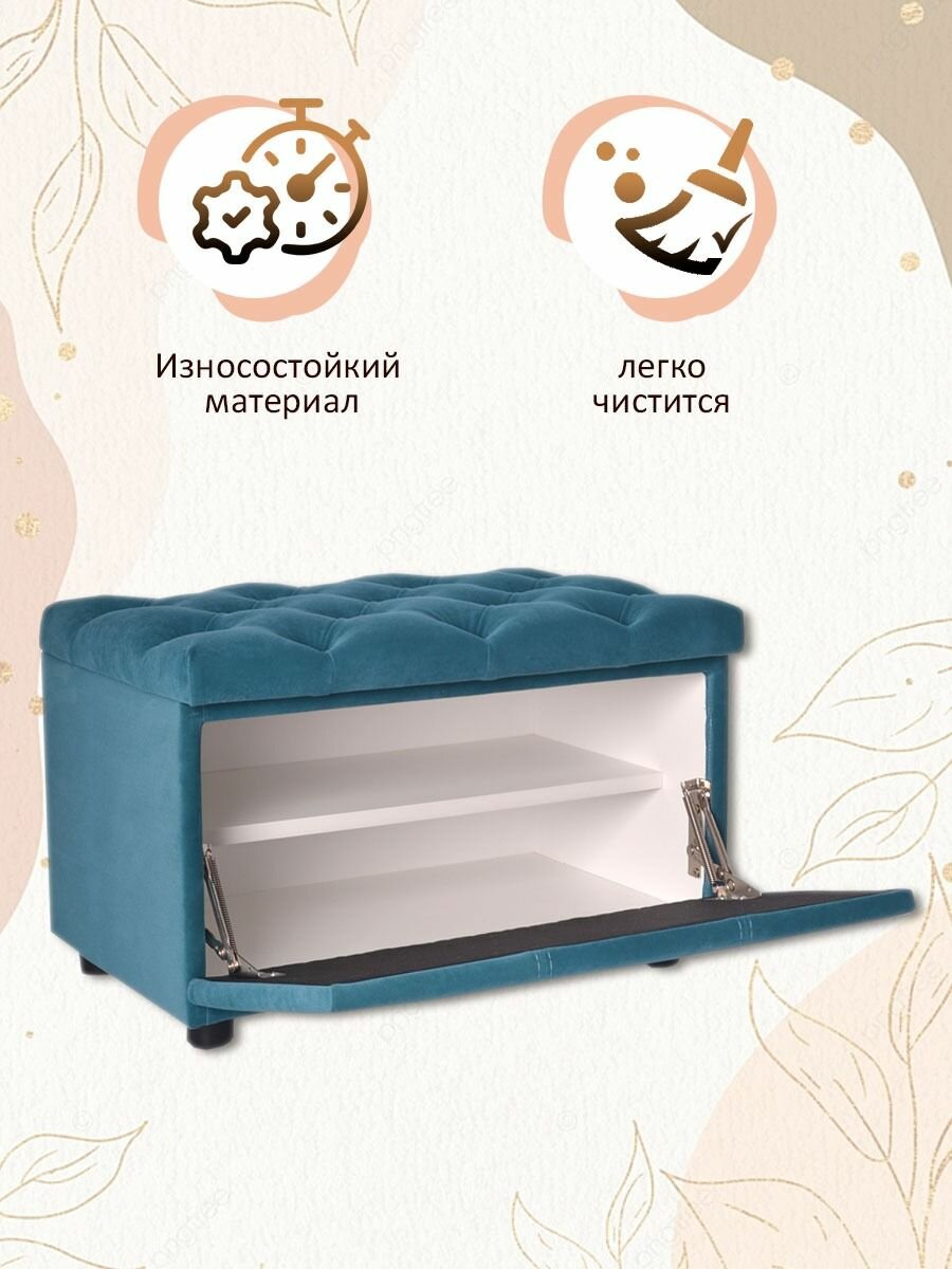 Обувница для прихожей с сиденьем закрытая / Пуф мягкий велюр / Банкетка в прихожую Морская волна 59.5*38.5*38 интересное: