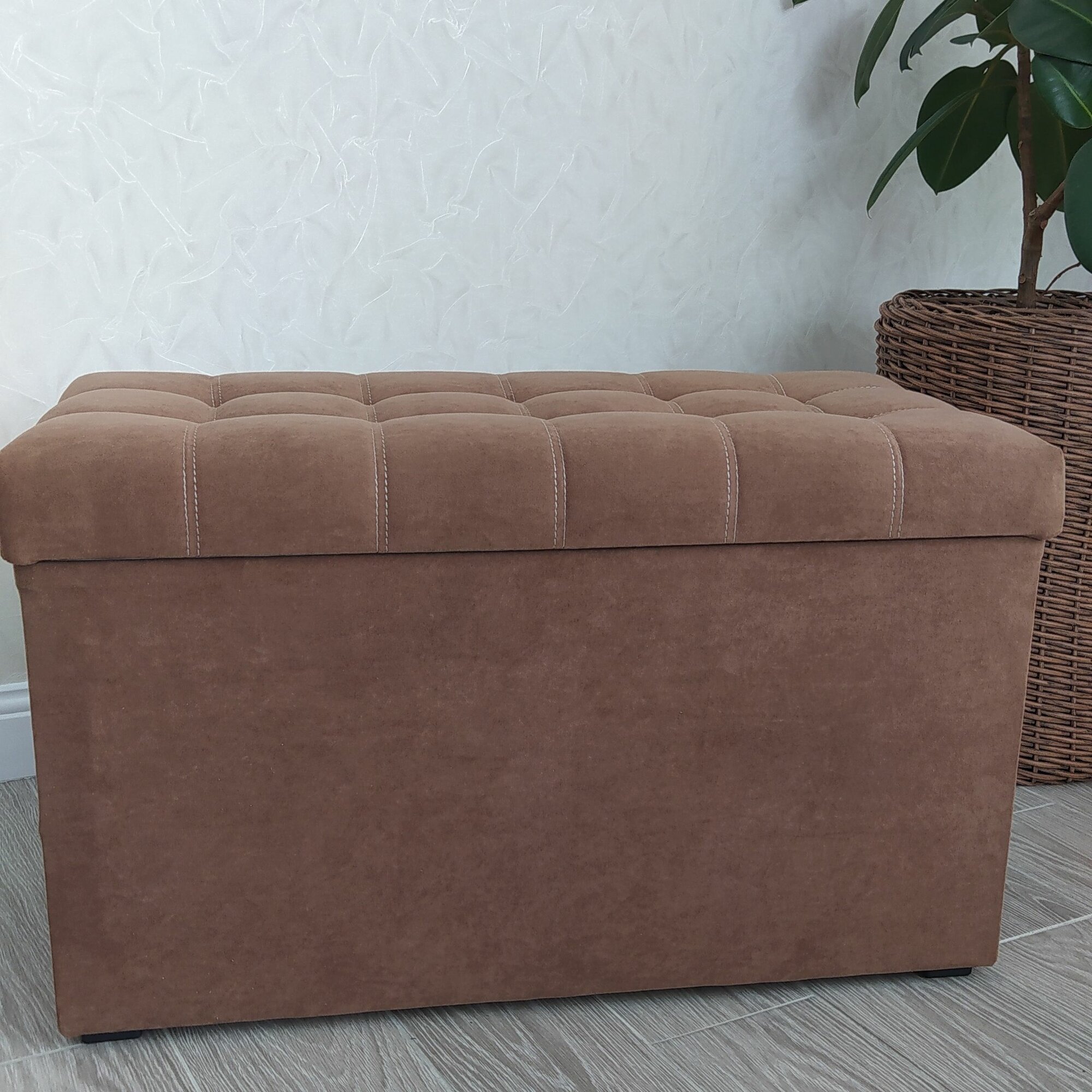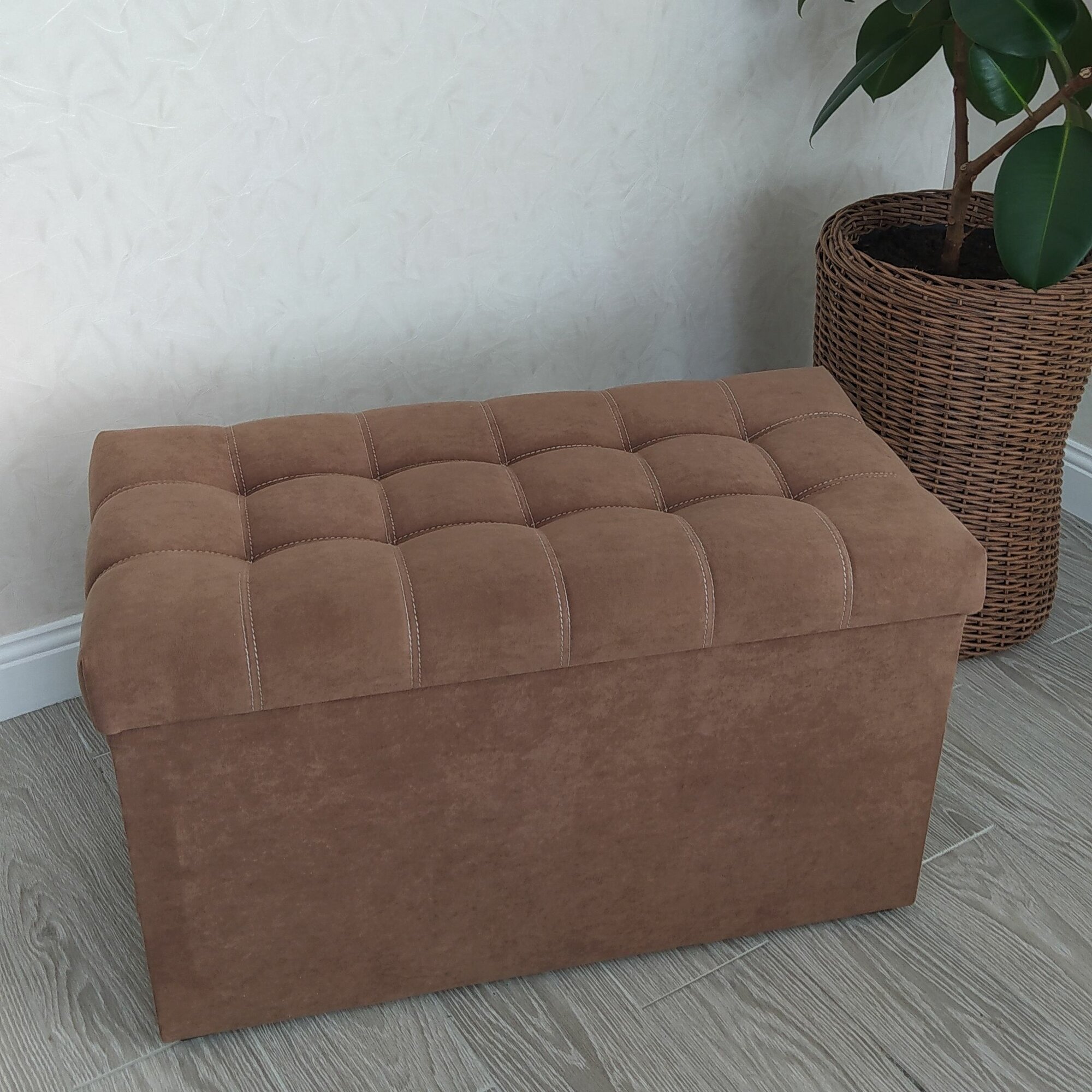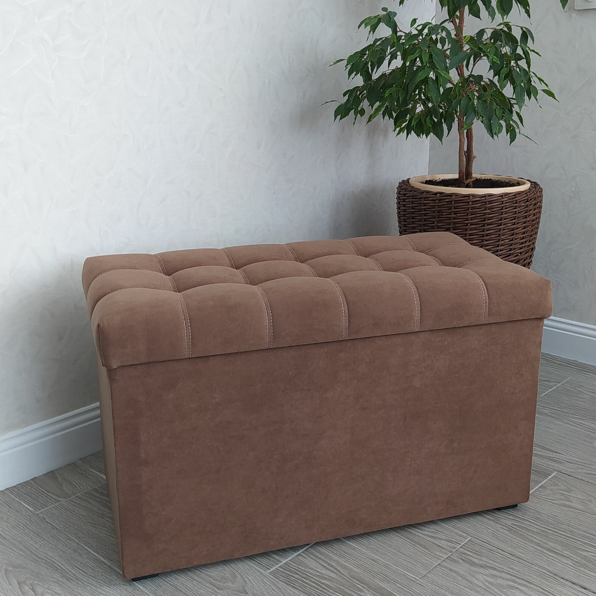 Пуфик в прихожую Вита с ящиком для хранения, банкетка на деревянных ножках, микровелюр, в собранном виде, 71х38х45см, коричневый