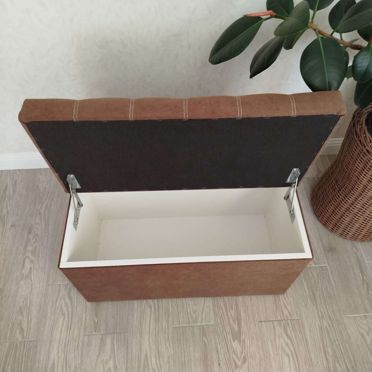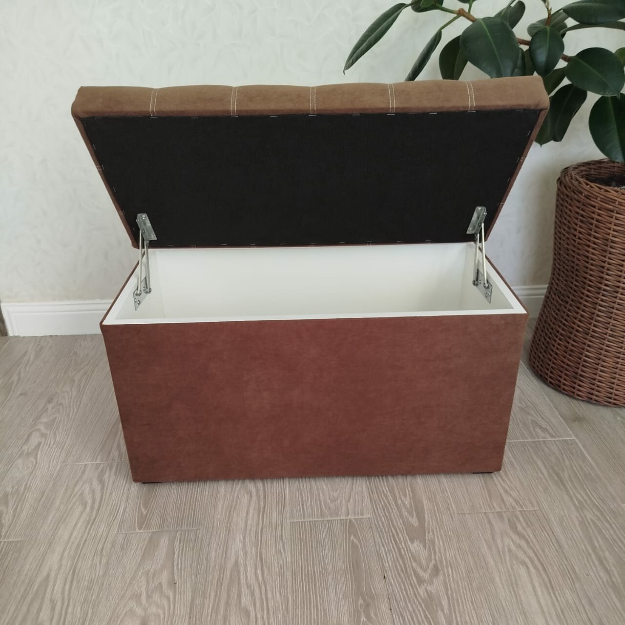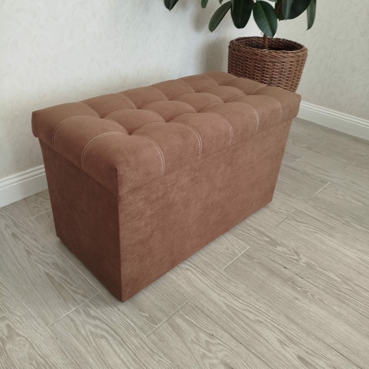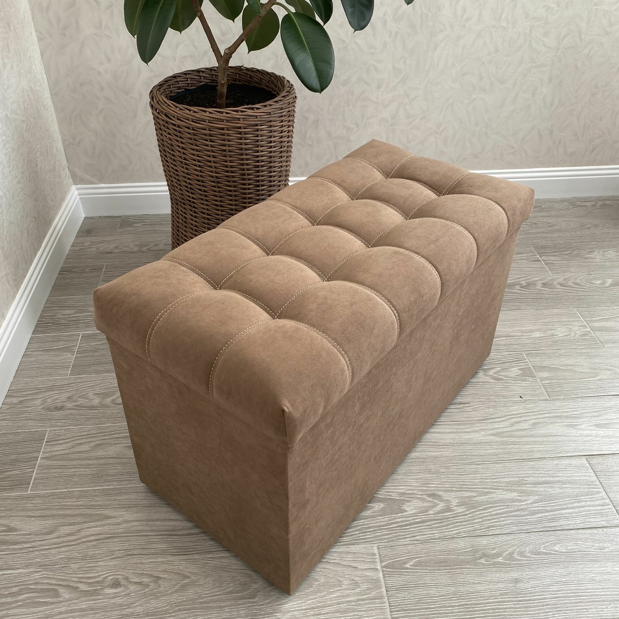 Пуфик в прихожую Вита с ящиком для хранения, банкетка на деревянных ножках, микровелюр, в собранном виде, 71х38х45см, коричневый