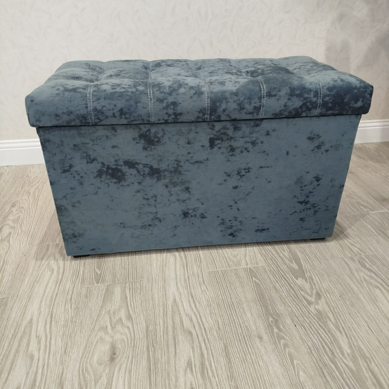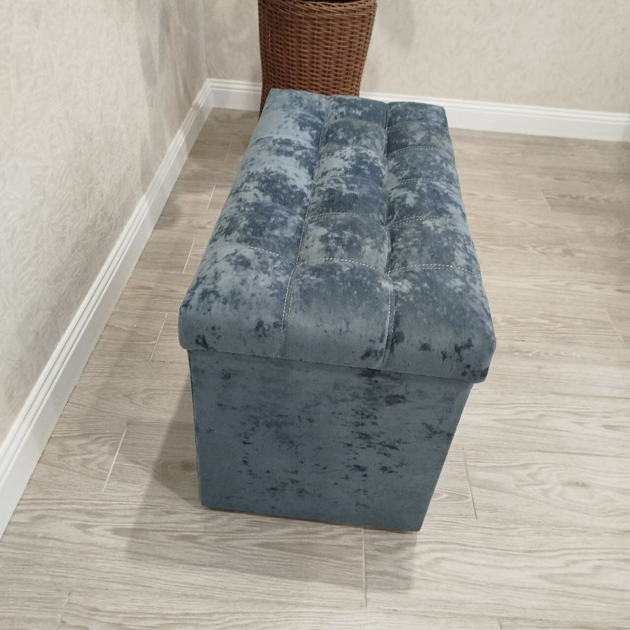 Пуфик в прихожую Вита с ящиком для хранения, банкетка на деревянных ножках, микровелюр, в собранном виде, 71х38х45см, серый графит