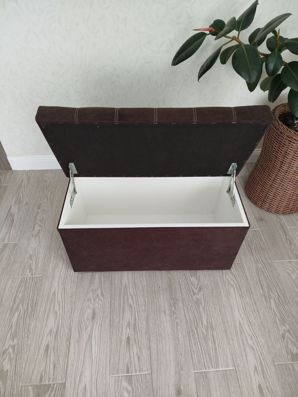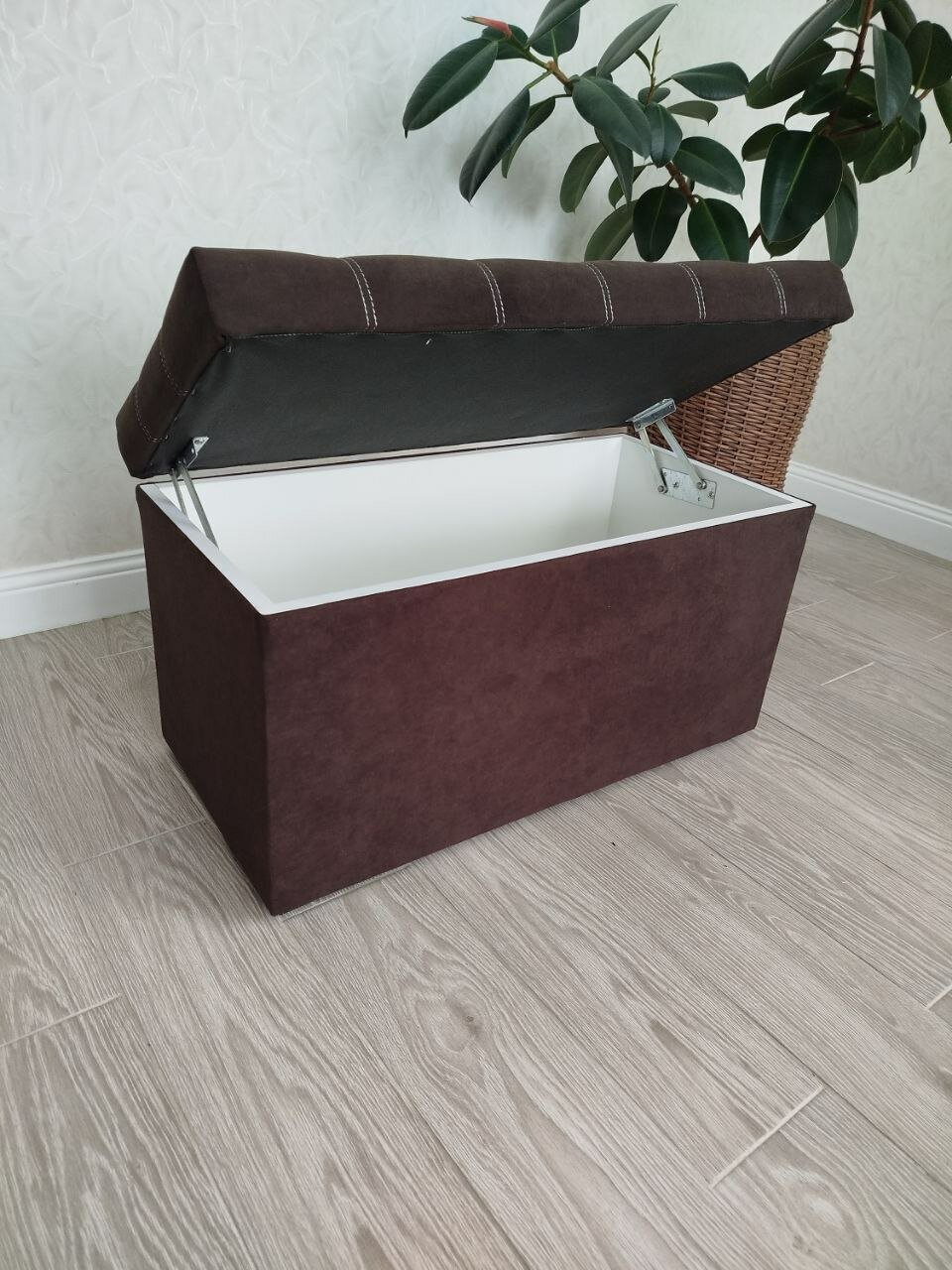 Пуфик в прихожую Вита с ящиком для хранения, банкетка на деревянных ножках, микровелюр, в собранном виде, 71х38х45см, коричневый