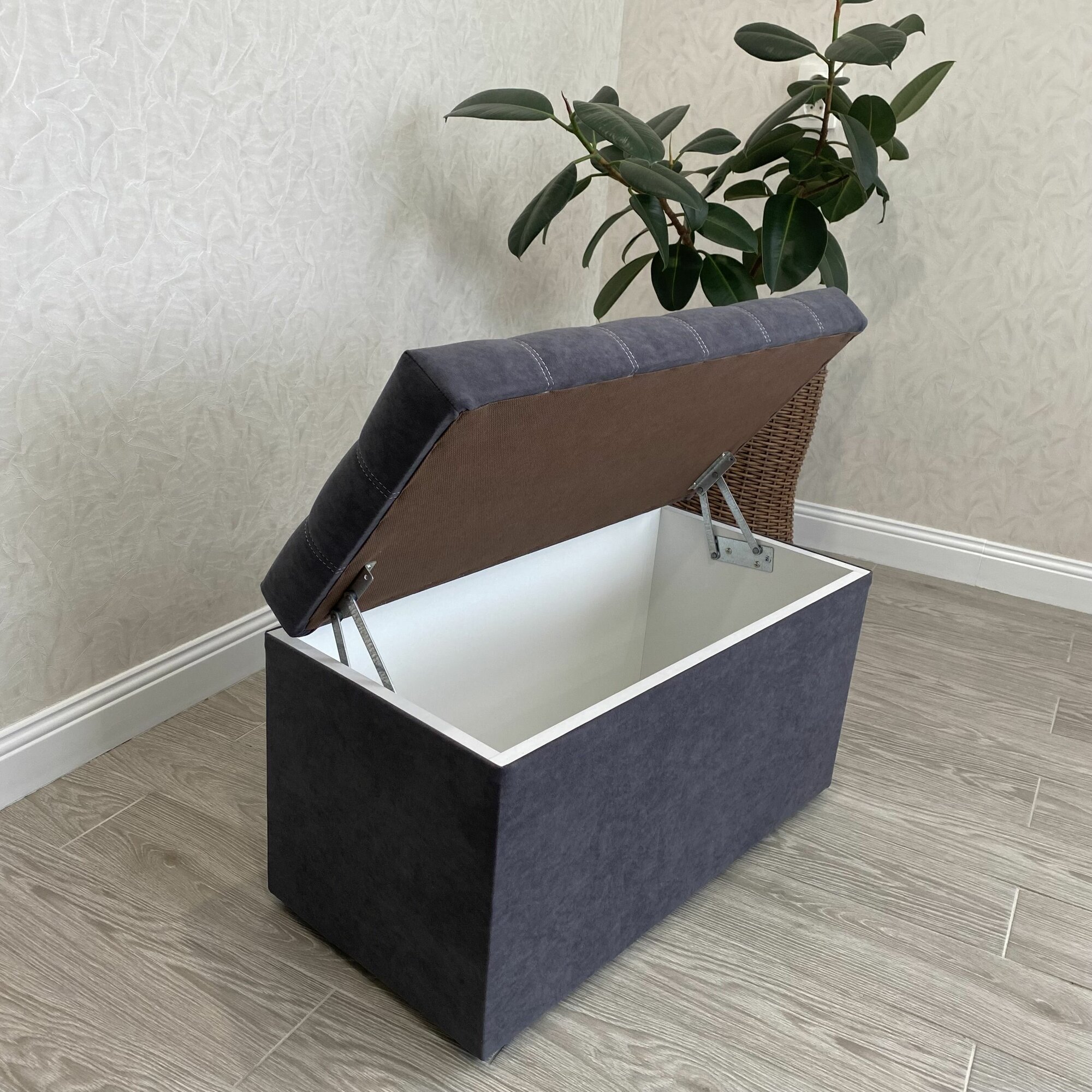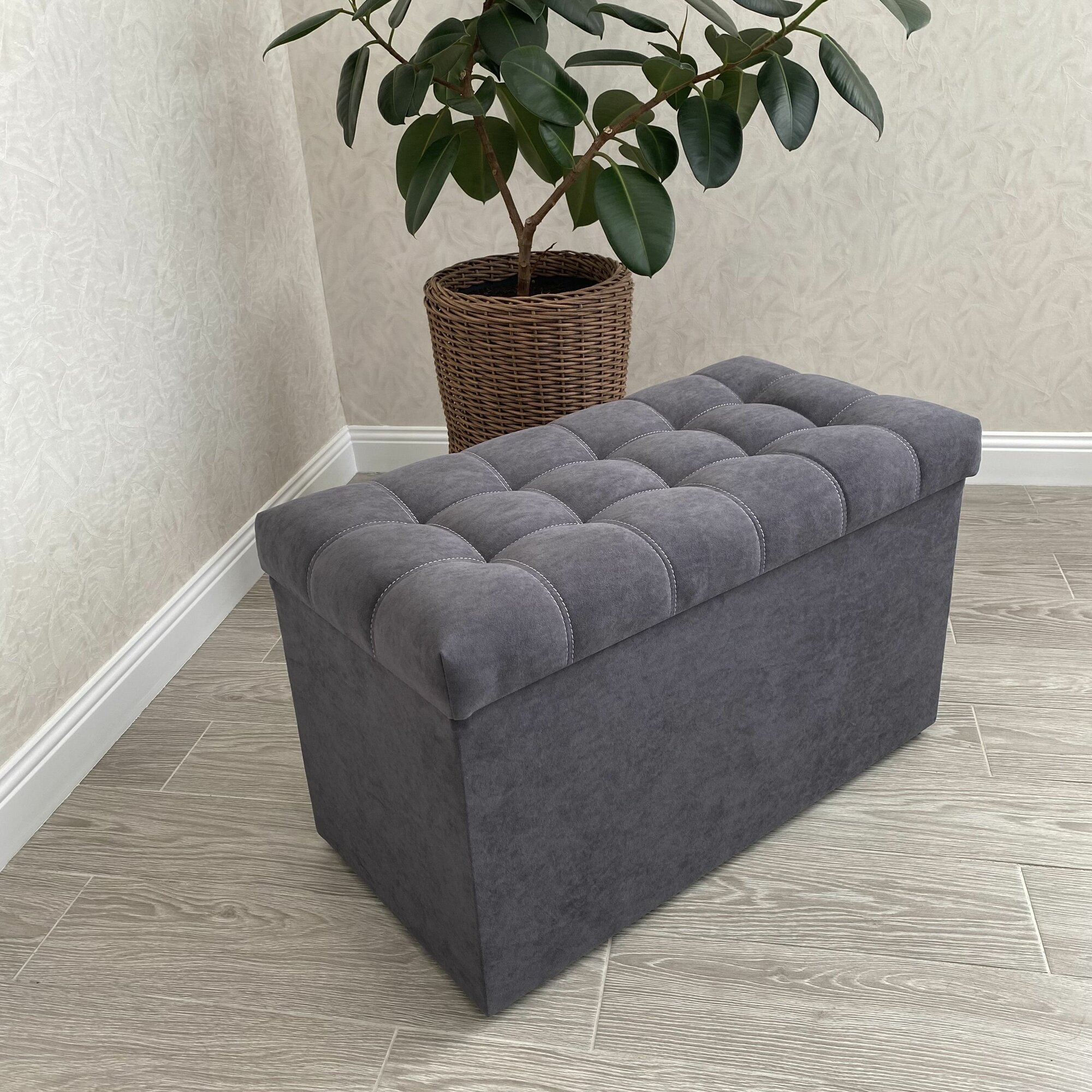 Пуфик в прихожую Вита с ящиком для хранения, банкетка на деревянных ножках, микровелюр, в собранном виде, 71х38х45см, серый графит