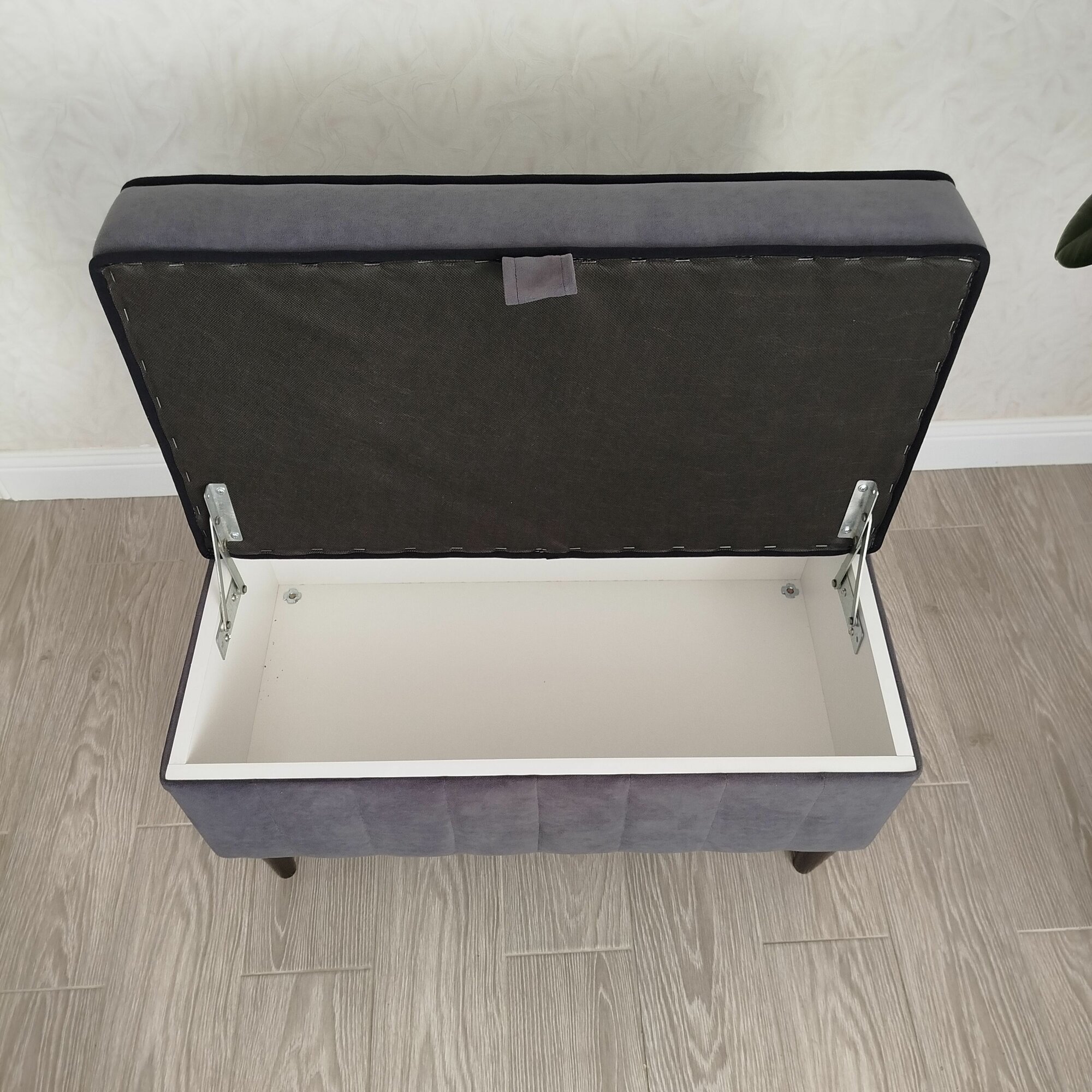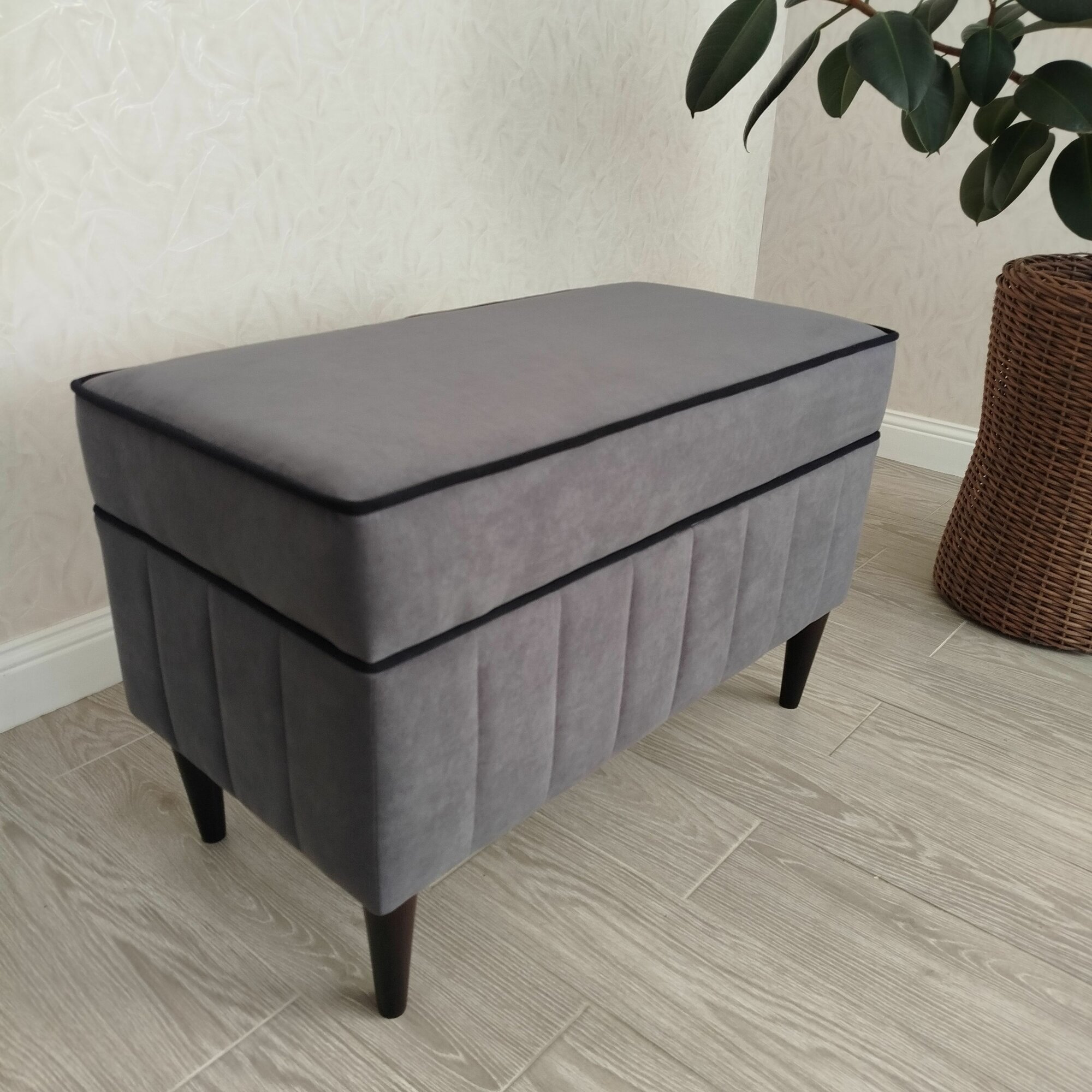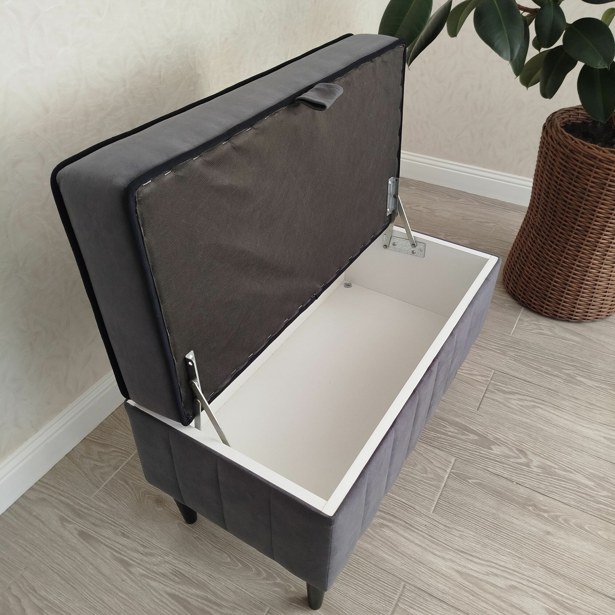 Купить Пуфик в прихожую Вита с ящиком для хранения, банкетка на деревянных ножках, микровелюр, в собранном виде, 71х38х45см, серый графит