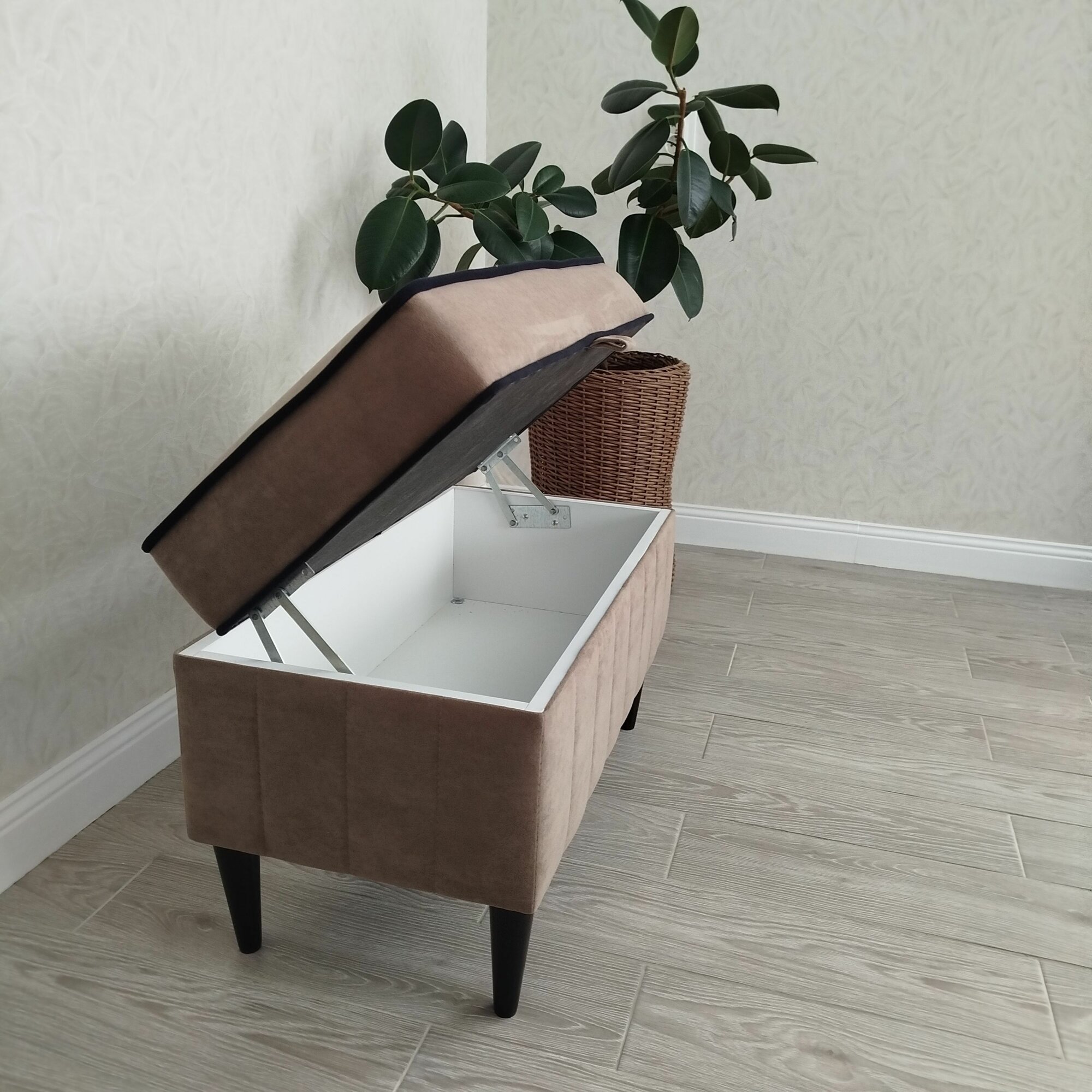 Пуфик в прихожую Вита с ящиком для хранения, банкетка на деревянных ножках, микровелюр, в собранном виде, 71х38х45см, серый графит