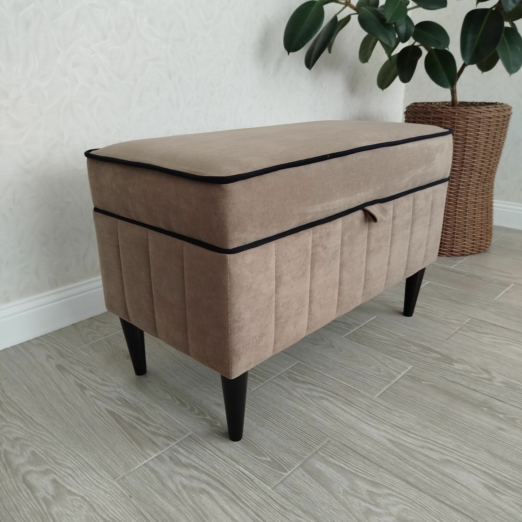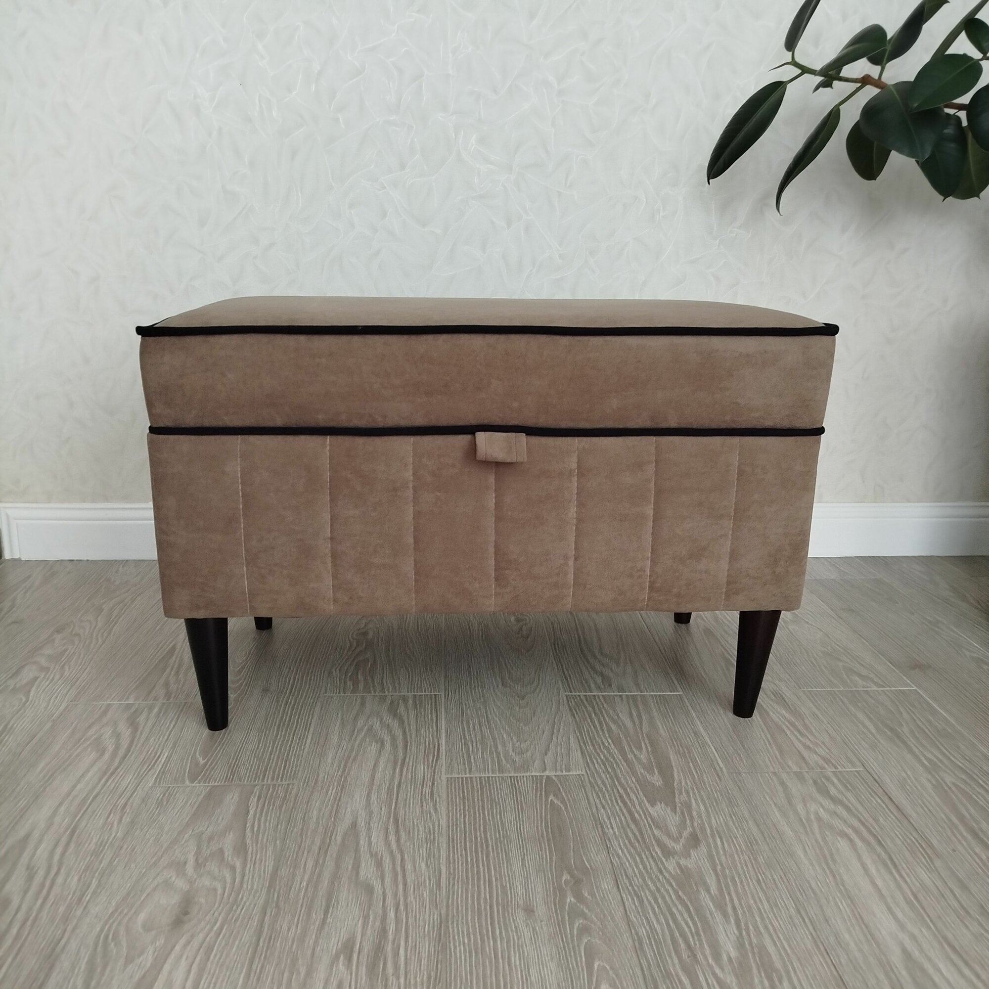 Купить Пуфик в прихожую Вита с ящиком для хранения, банкетка на деревянных ножках, микровелюр, в собранном виде, 71х38х45см, коричневый