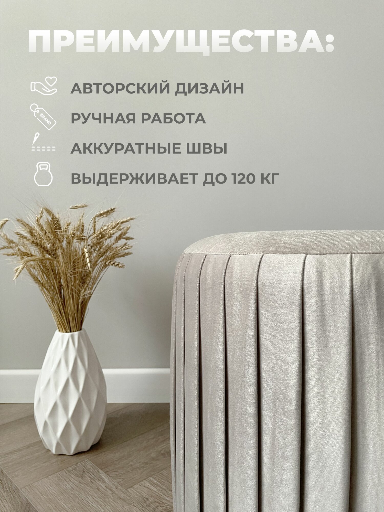СохранитьПуф круглый Элика / пуфик в прихожую, в спальню / велюр / серо-бежевый интересное:
