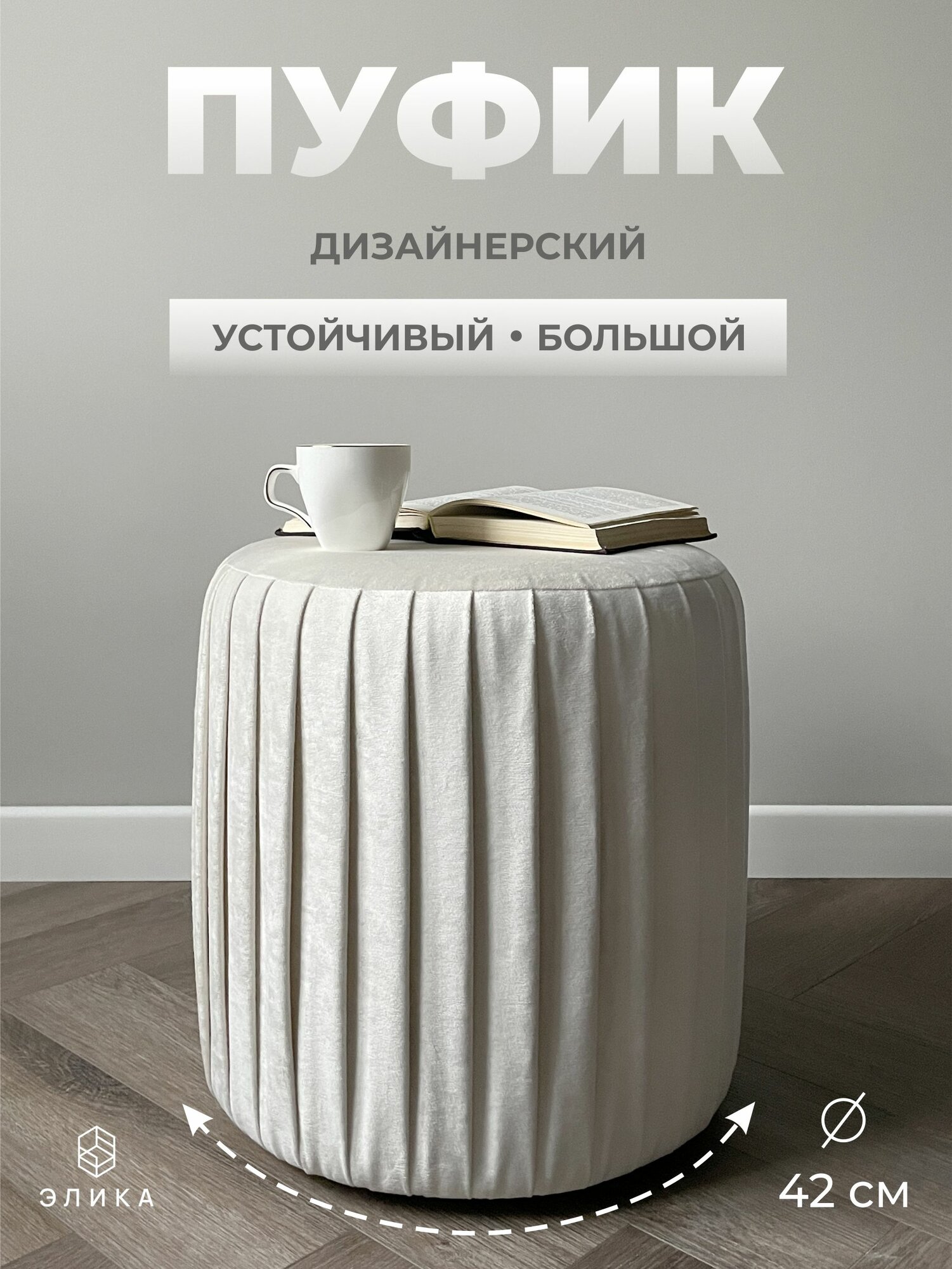 СохранитьПуф круглый Элика / пуфик в прихожую, в спальню / велюр / белый интересное: