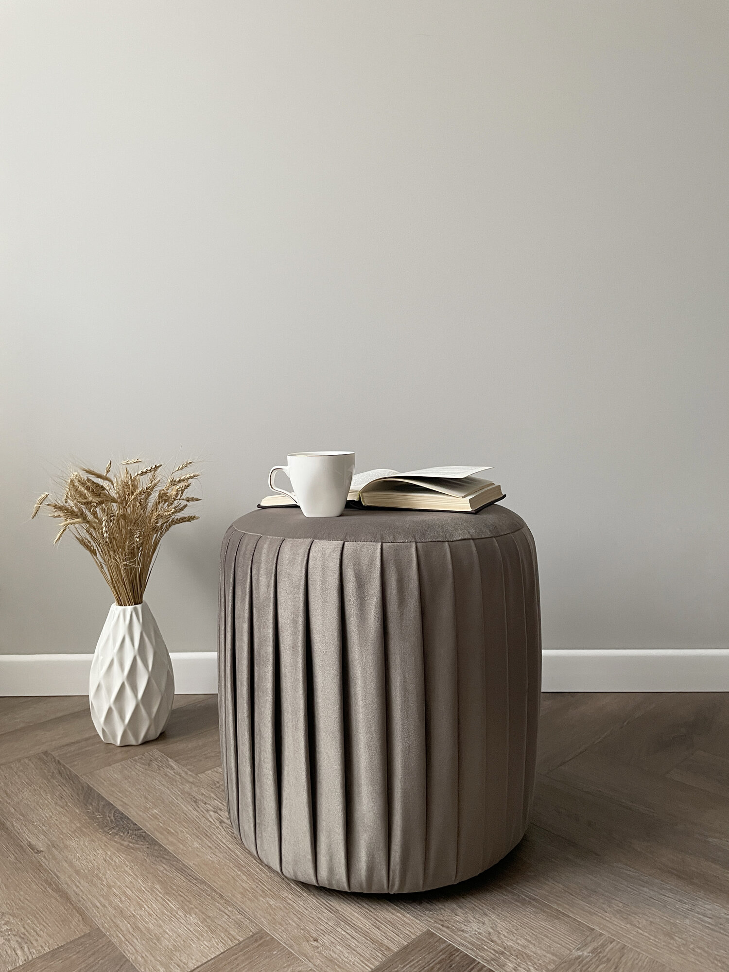 Пуф круглый Элика / пуфик в прихожую, в спальню / велюр / серо-бежевый