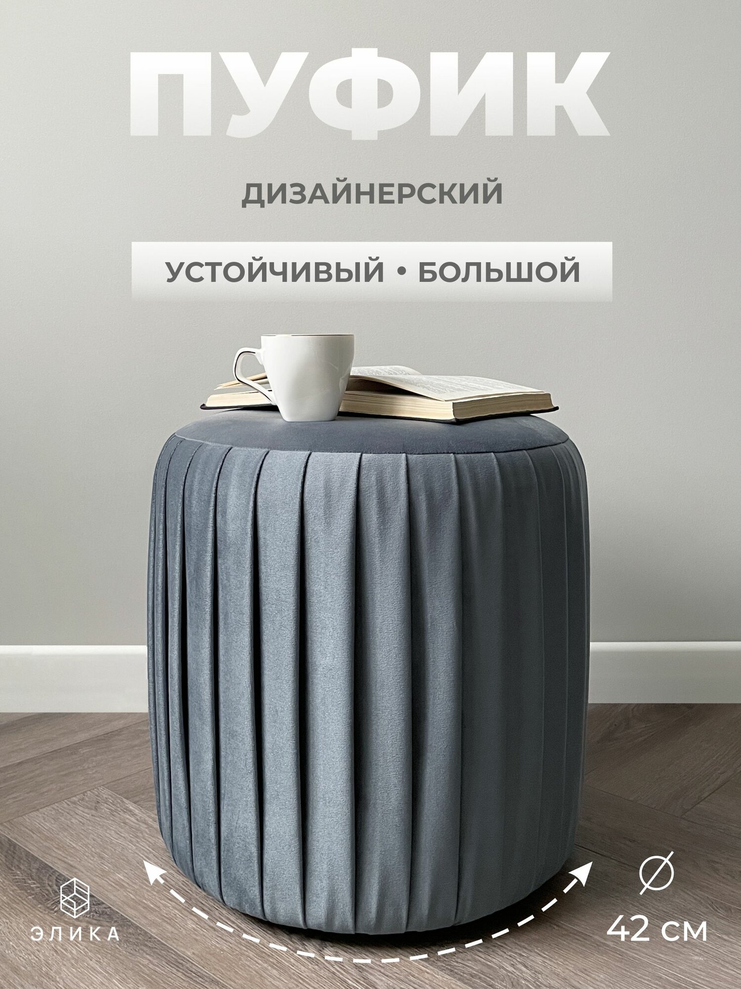 СохранитьПуф круглый Элика / пуфик в прихожую, в спальню / велюр / темно-серый интересное: