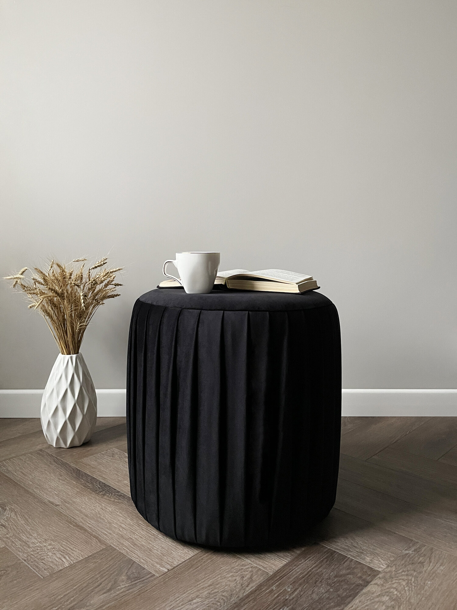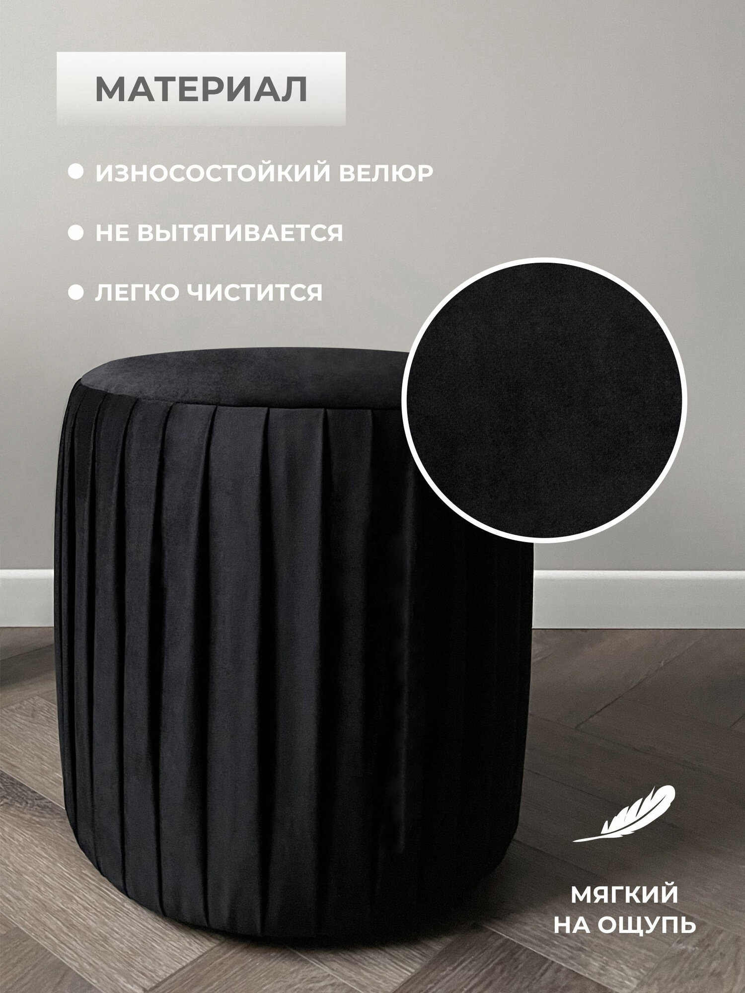 Купить Пуф круглый Элика / пуфик в прихожую, в спальню / велюр / черный
