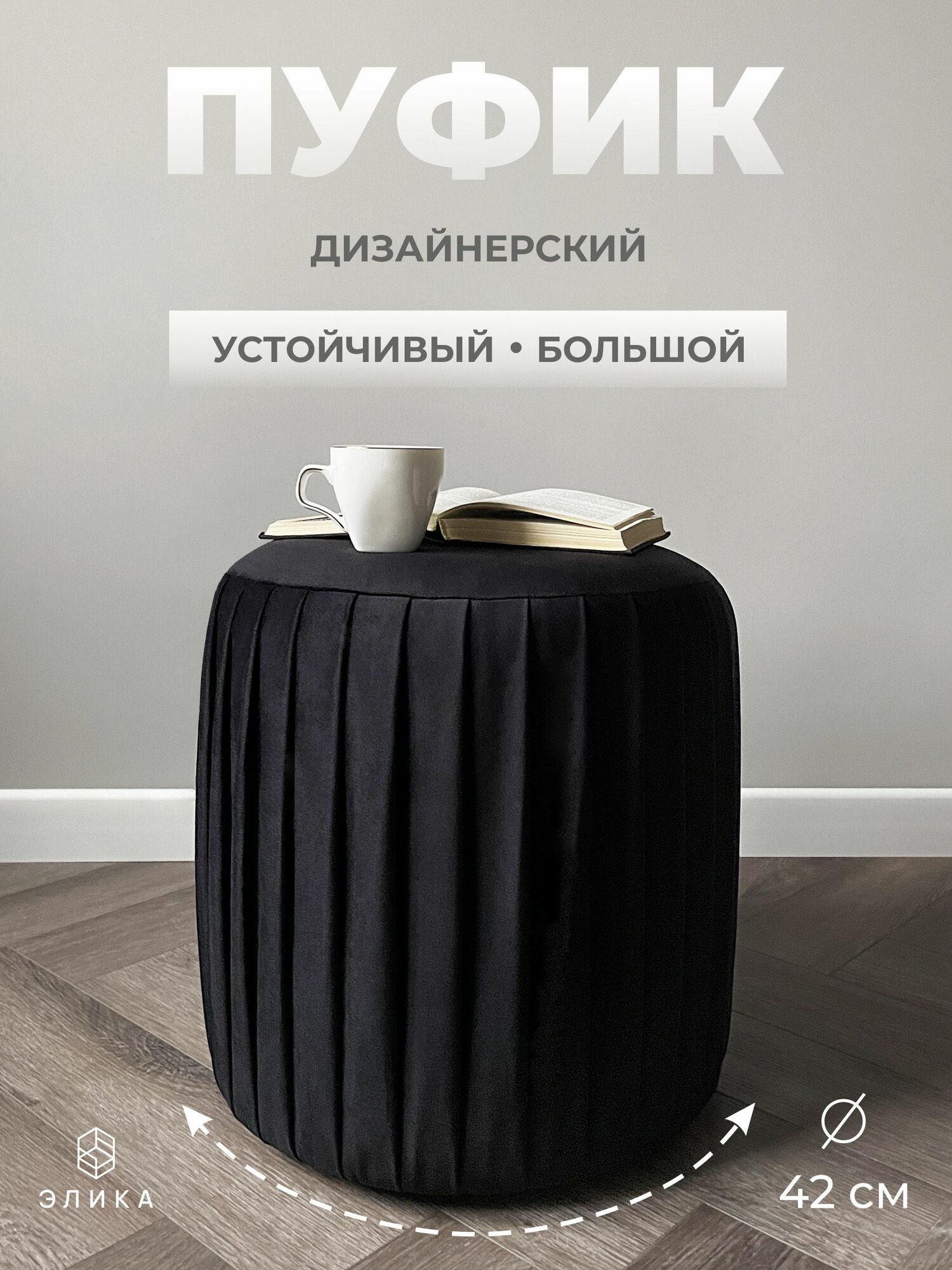 СохранитьПуф круглый Элика / пуфик в прихожую, в спальню / велюр / черный интересное: