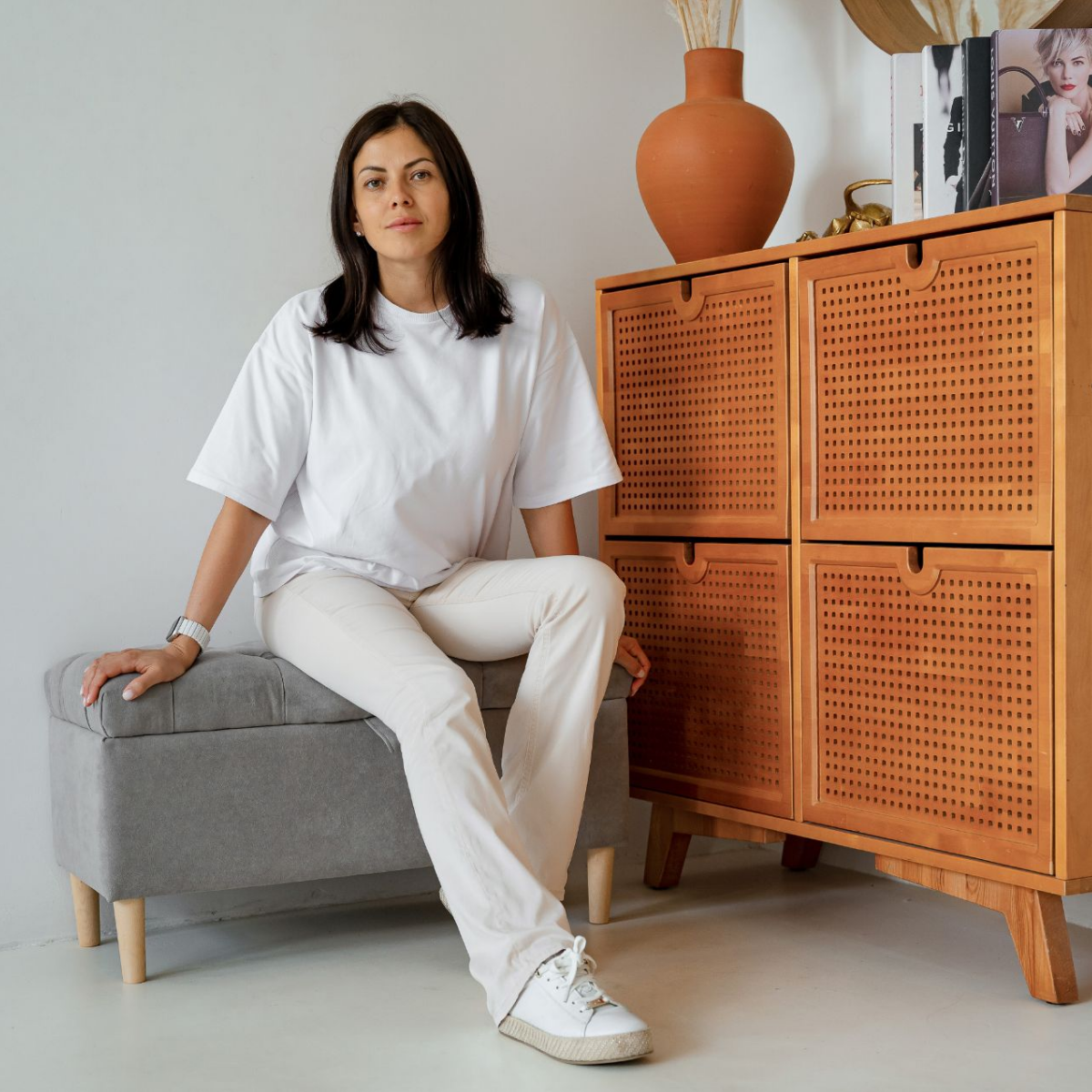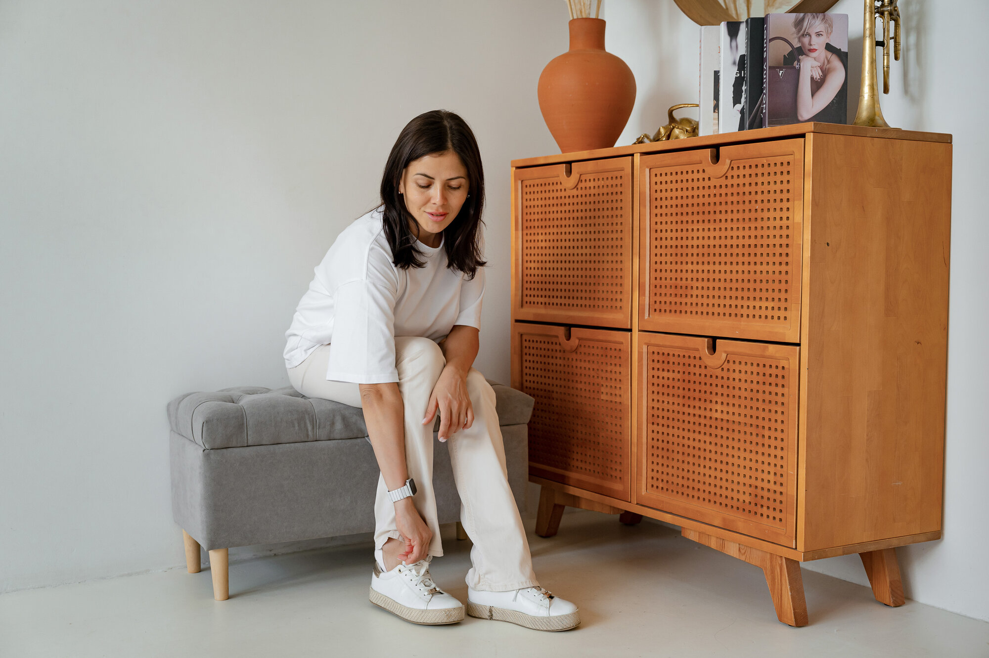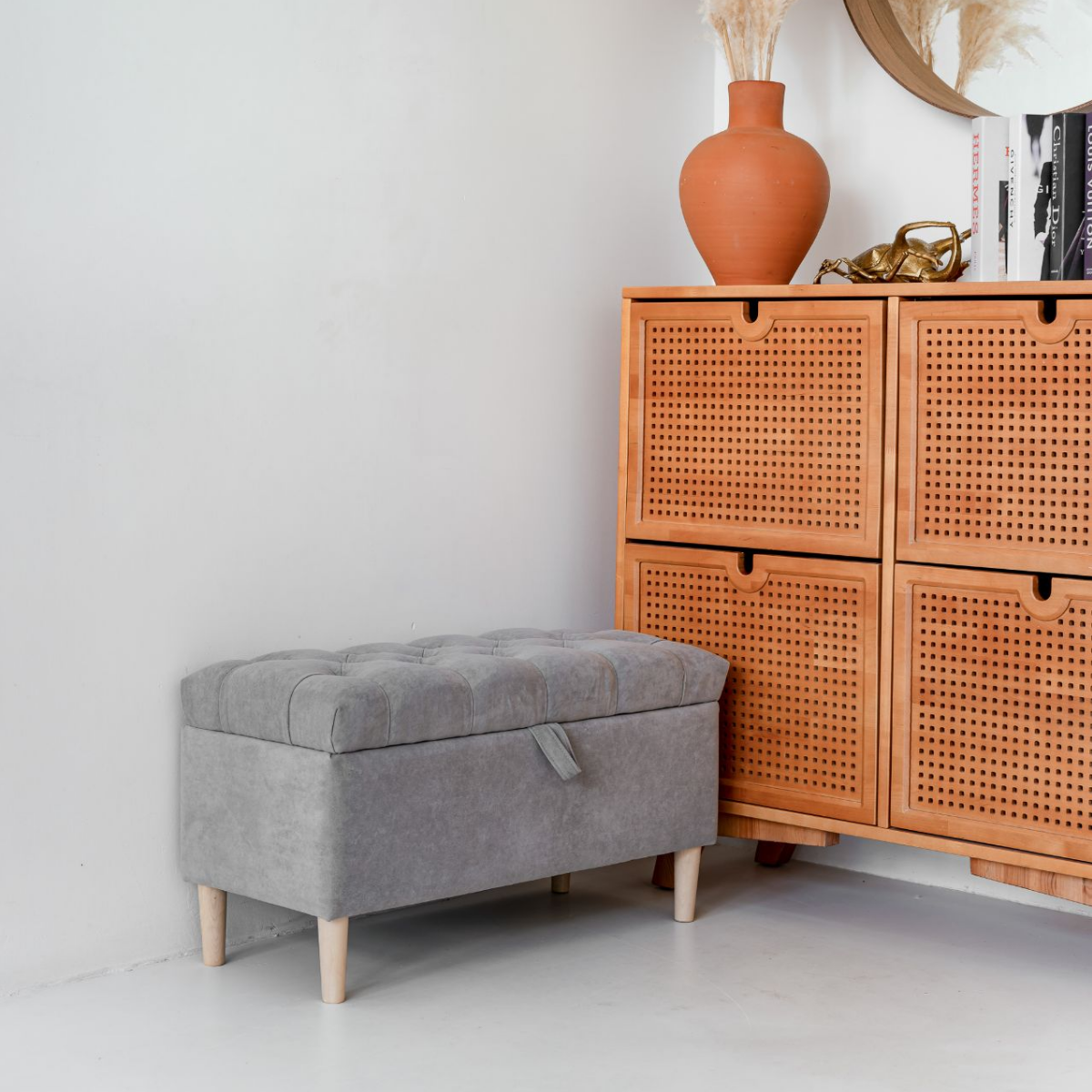 Обувница для прихожей с сиденьем закрытая / Пуф мягкий из экокожи / Банкетка в прихожую Бежевый 59.5*38.5*38
