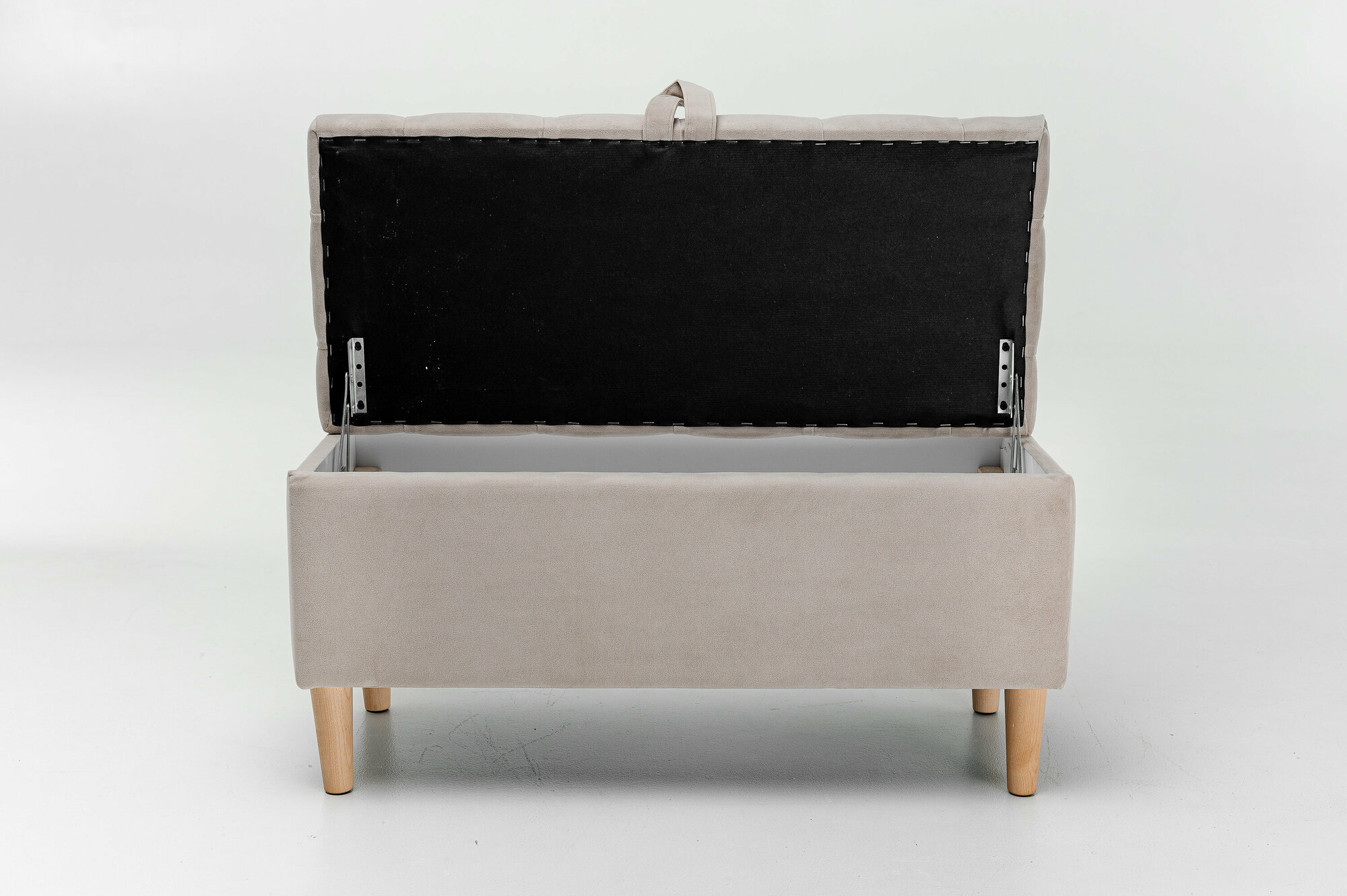 Купить Пуф с коробом для хранения на ножках 110Lux Brendoss, пуфик с ящиком, банкетка, цвет бежевый, износостойкий велюр