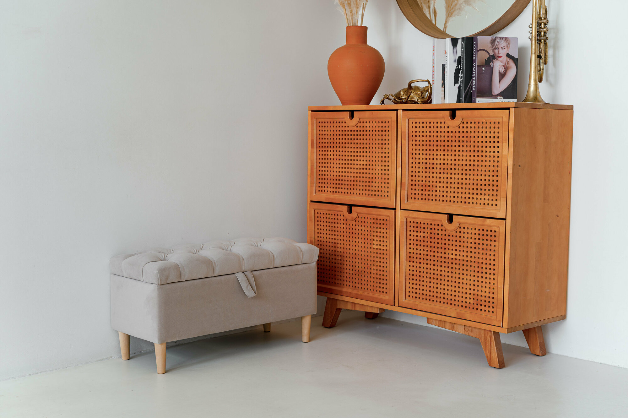 Обувница для прихожей с сиденьем закрытая / Пуф мягкий из экокожи / Банкетка в прихожую Бежевый 59.5*38.5*38