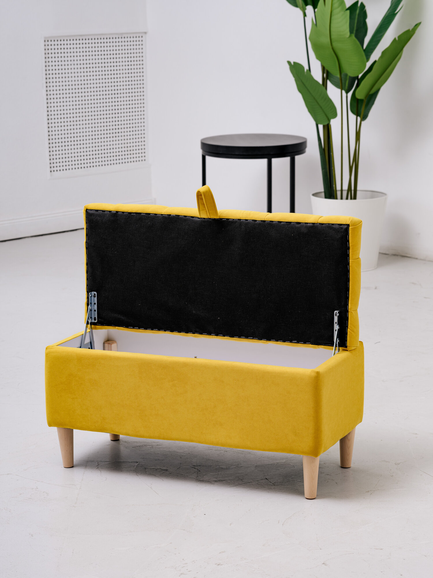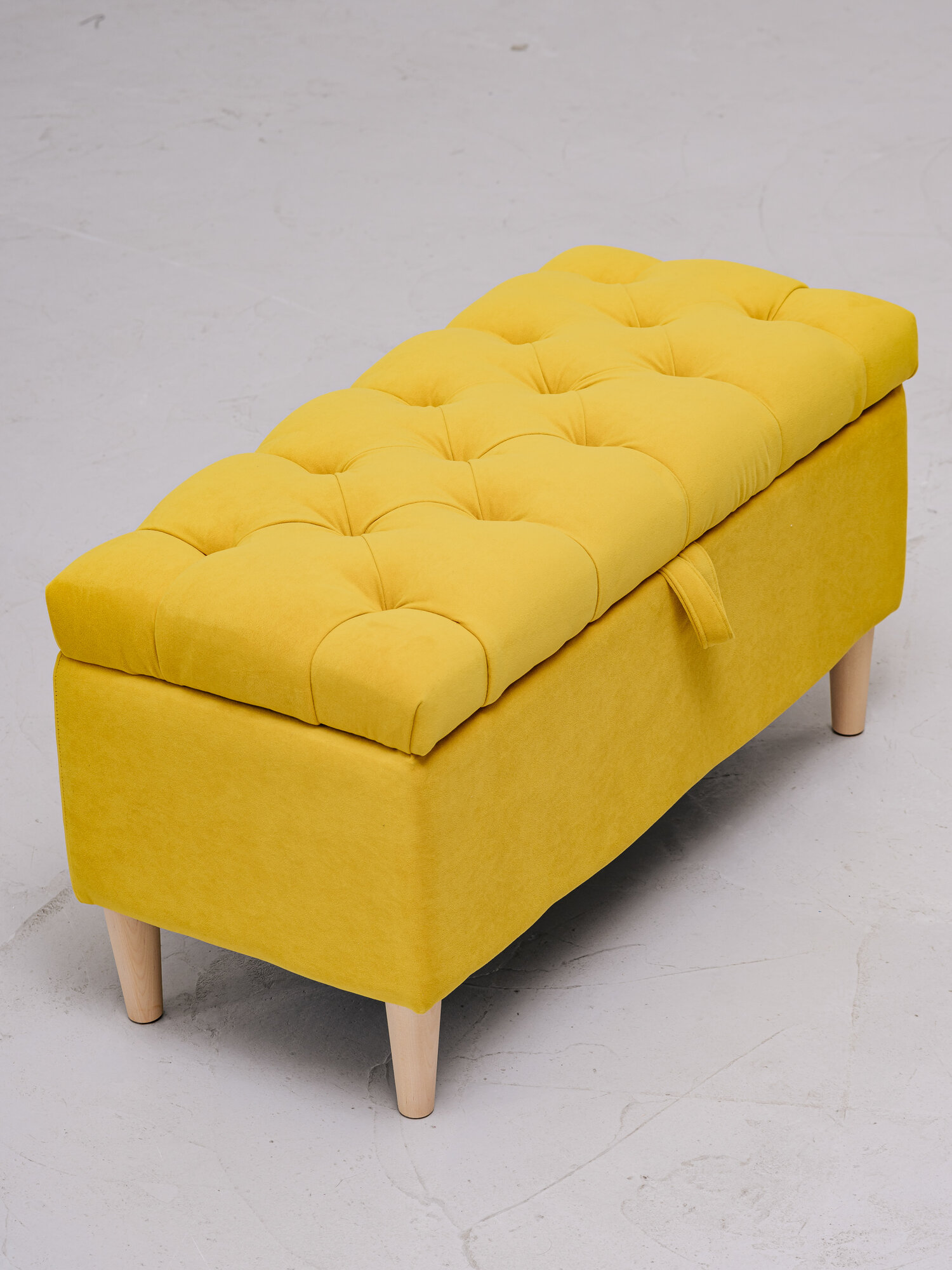 Купить Пуф с коробом для хранения на ножках 110Lux Brendoss, пуфик с ящиком, банкетка, цвет желтый, износостойкий велюр