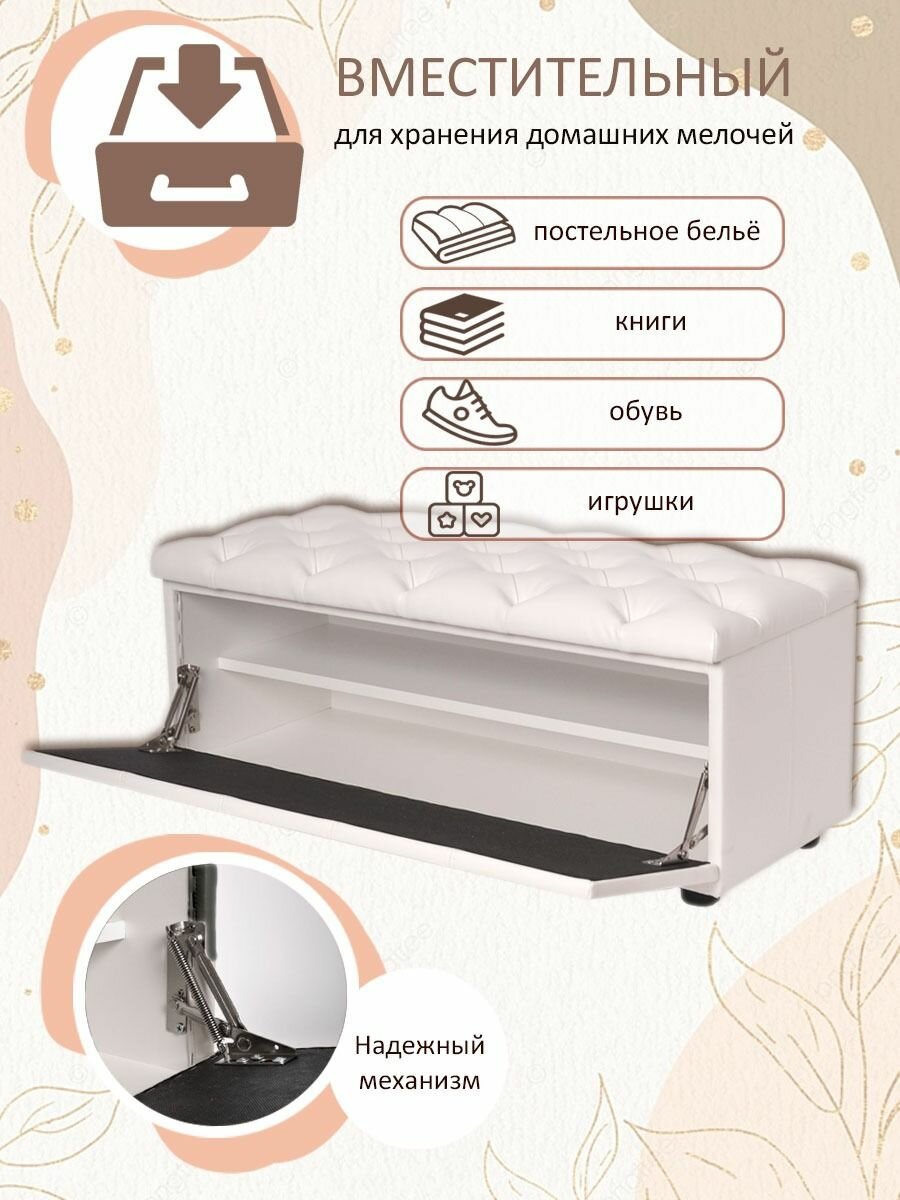 Обувница для прихожей с сиденьем закрытая / Пуф мягкий из экокожи / Банкетка в прихожую Белый 89.5*38.5*38 интересное: