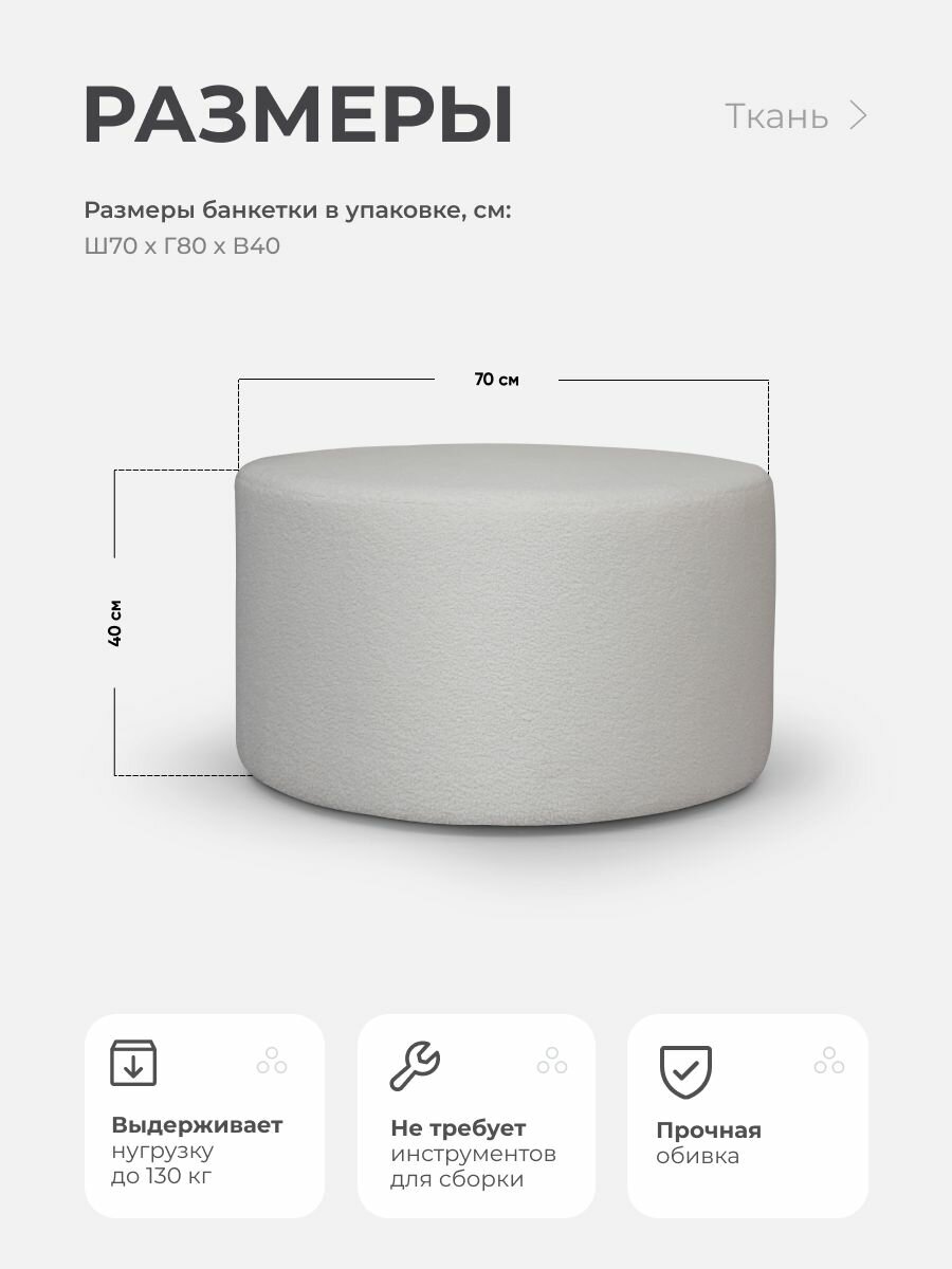Пуфик круглый в прихожую, для туалетного столика LADY MAY Банкетка 80 х 40 см, Букле