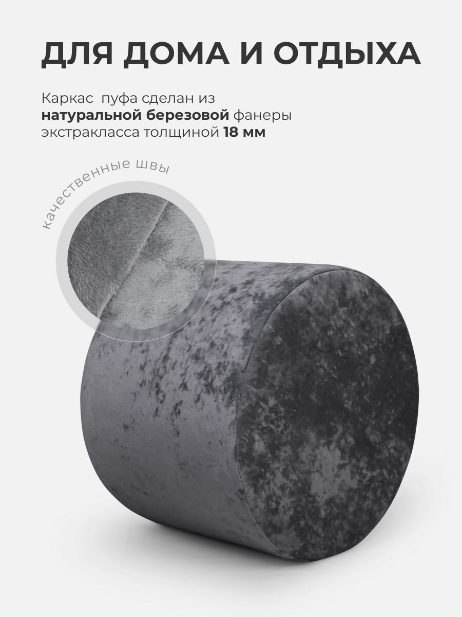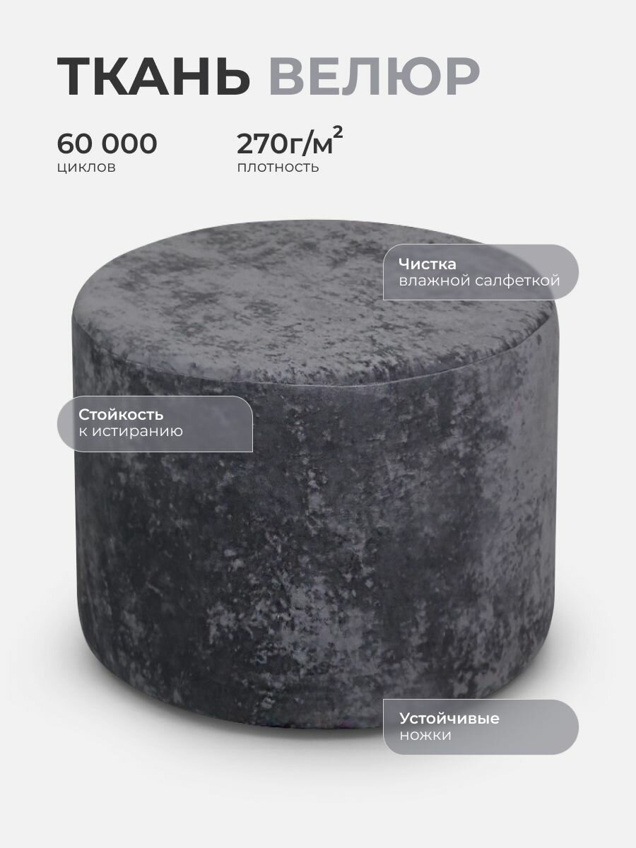 Пуф круглый Элика / пуфик в прихожую, в спальню / велюр / темно-синий