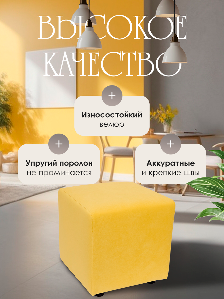 Пуф куб квадратный в прихожую велюр мягкий / Пуфик для туалетного столика Желтый 37*37*38 см интересное: