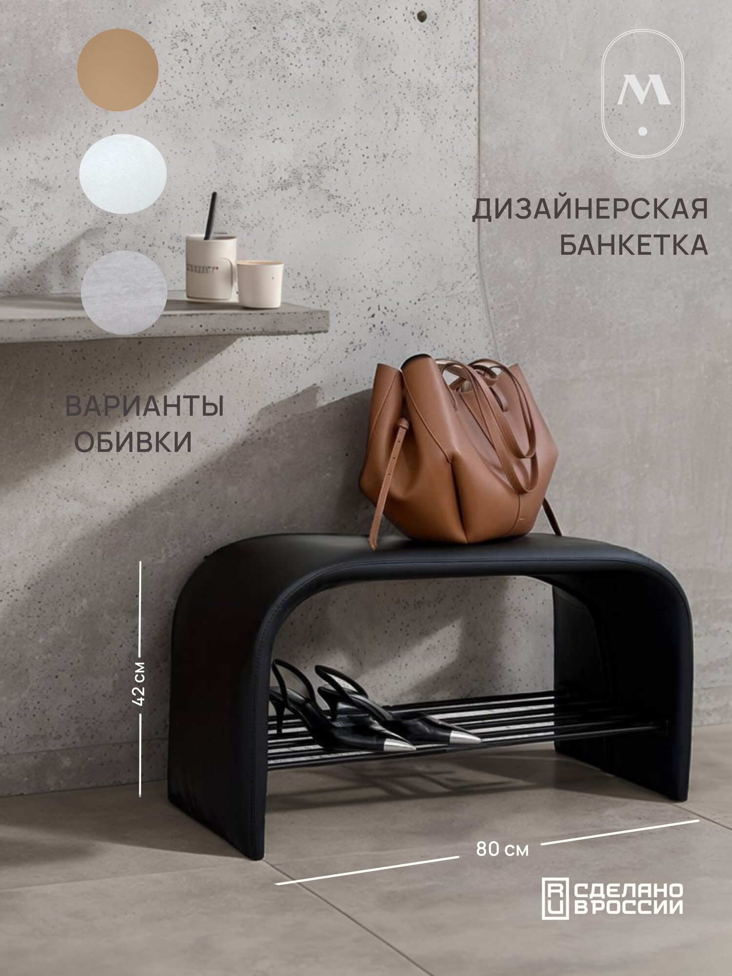 Обувница в коридор Mebel Made 800х420х350 в цвете Black искусственная кожа интересное: