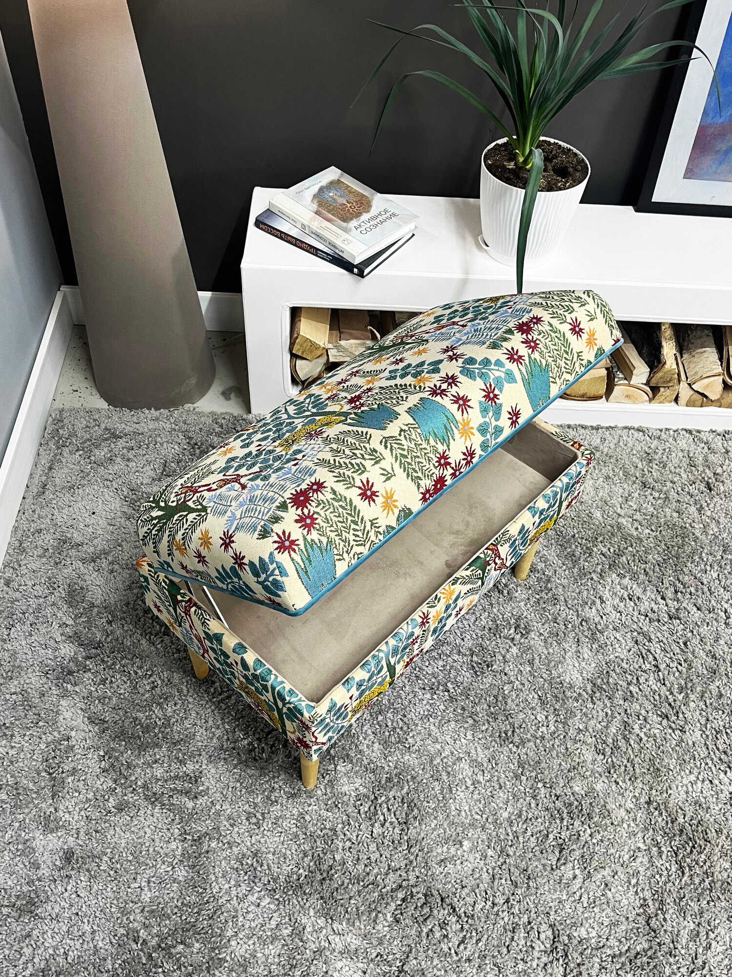 Банкетка BORDADO "Pititi", для прихожей, с ящиком, мебельный гобелен, 62х34х45 см