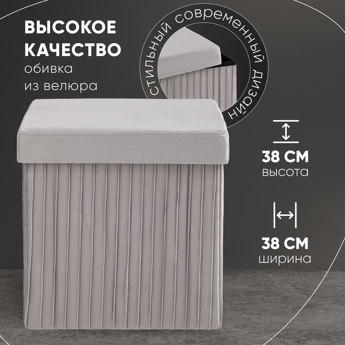 Пуф складной 2 шт с ящиком Store Square, антрацитовый