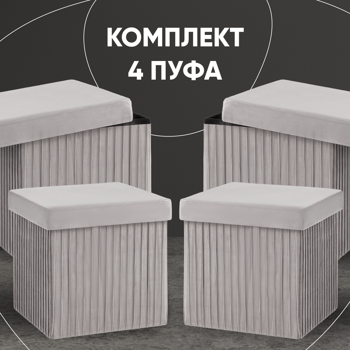 Купить Пуф складной с ящиком 4 шт Store Square, серый