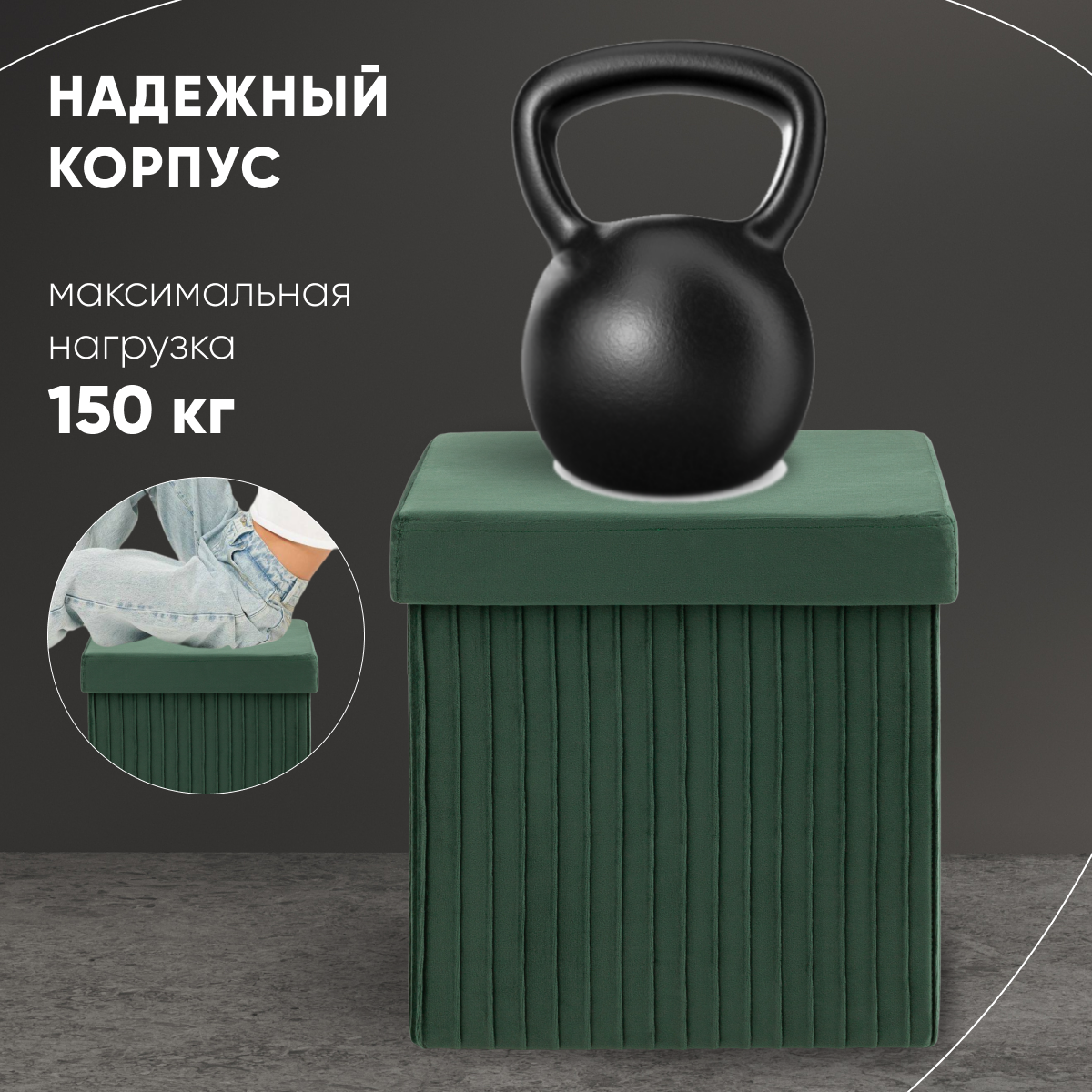 Пуф складной 2 шт с ящиком Store Square, зеленый