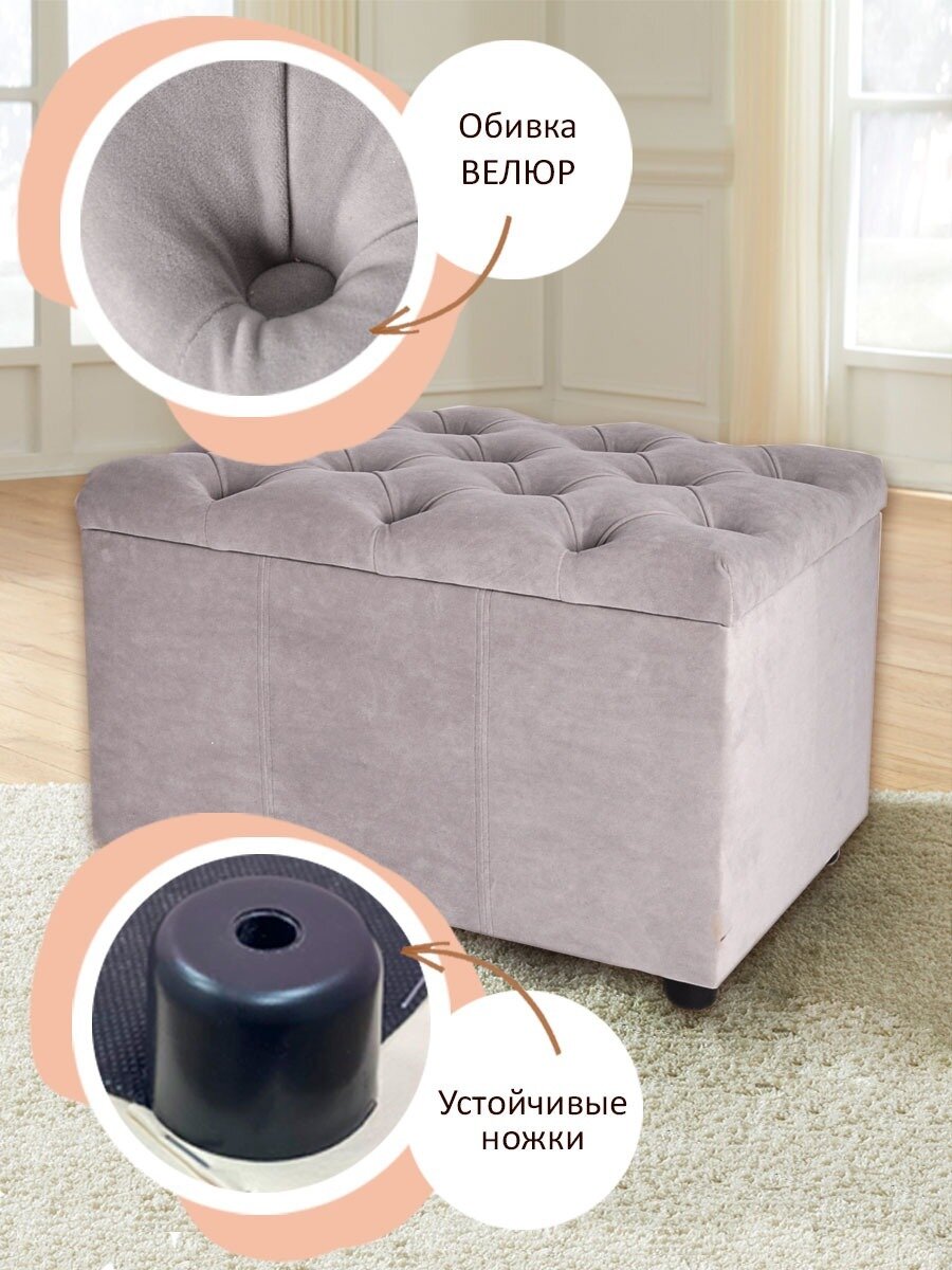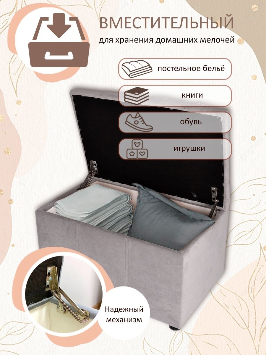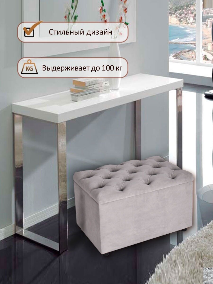 Пуф в прихожую с ящиком для хранения банкетка прямоугольная велюр Серый 59.5*38.5*38 см интересное: