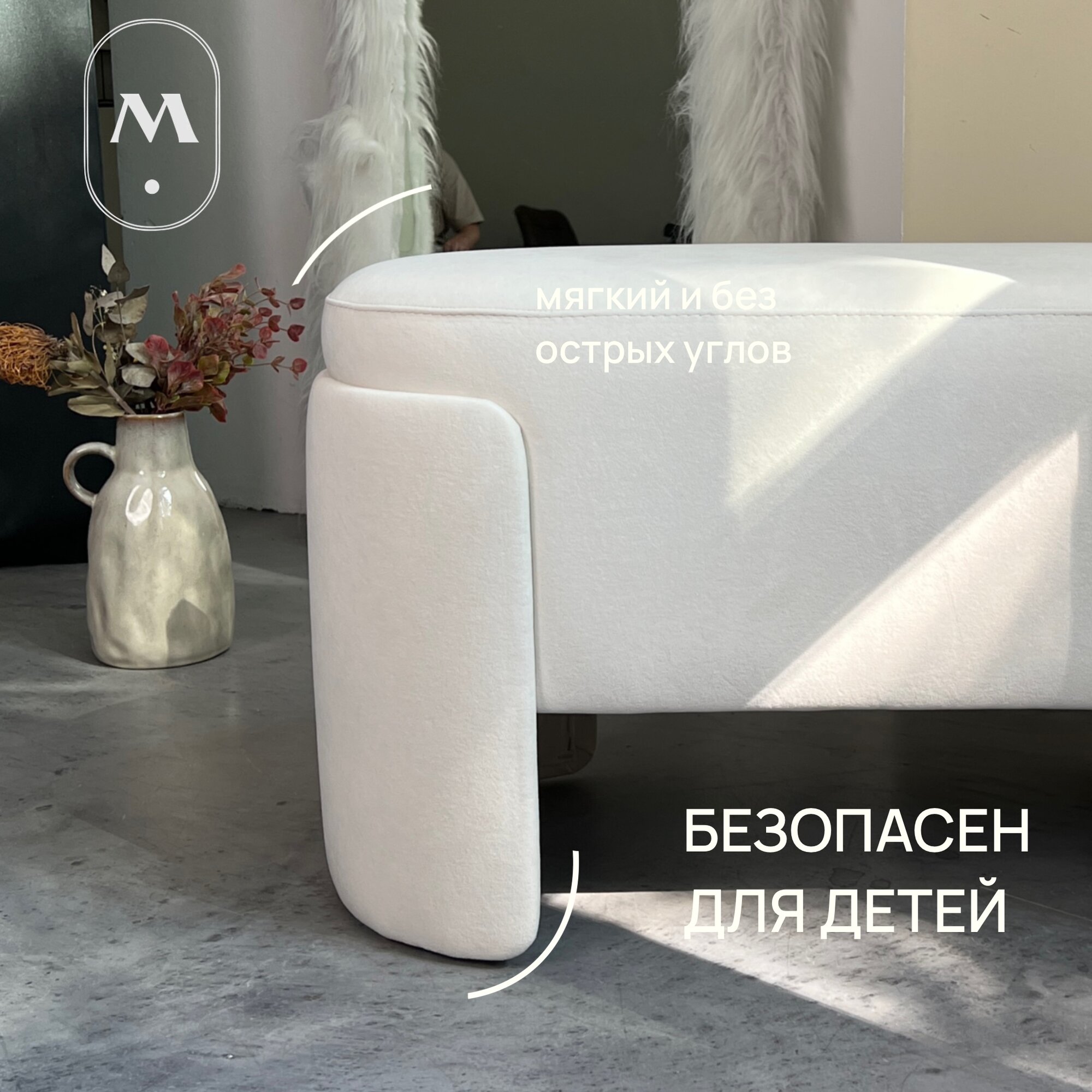 Пуфик в прихожую Polly в ткани велюр Teddy 04 1180мм*450мм*380мм
