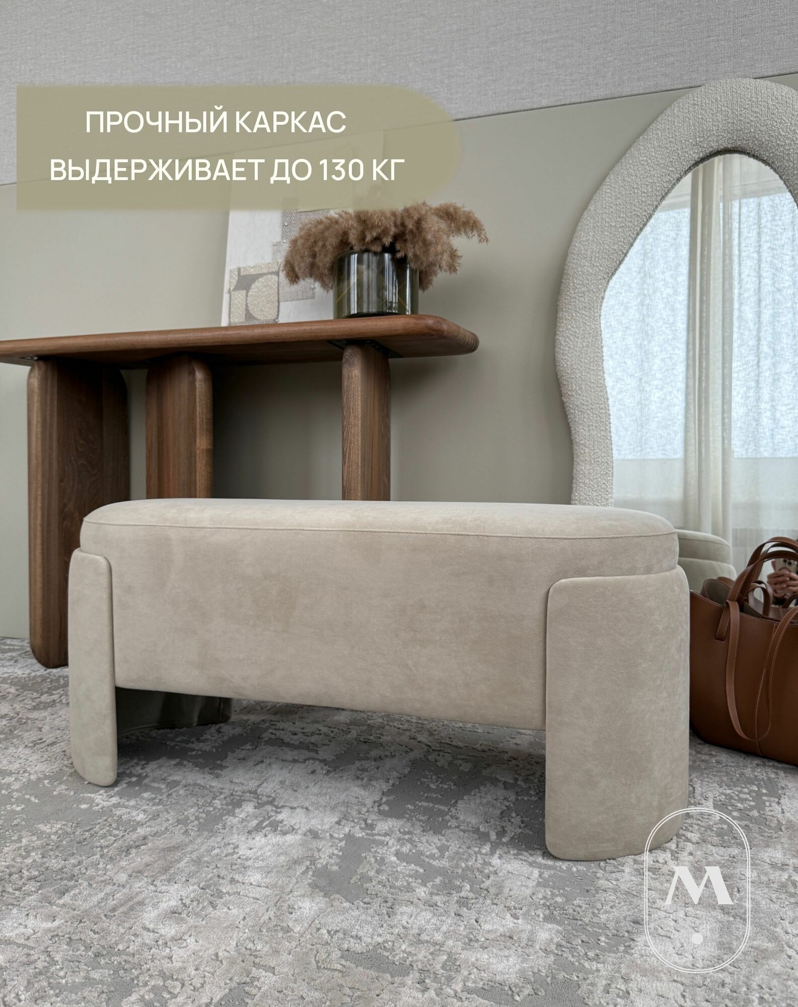 Пуфик в прихожую Polly в ткани велюр Teddy 04 980мм*450мм*380мм