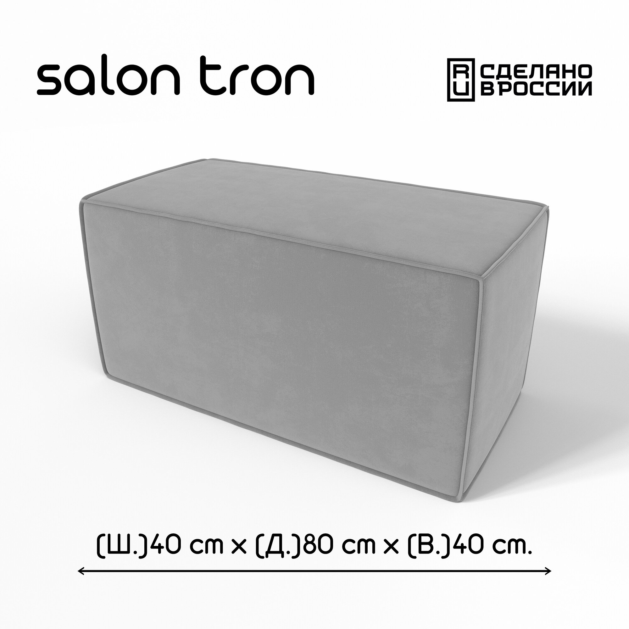 Купить Пуф SALON TRON "Куб", 80х40 см, максимальная нагрузка 350 кг, велюр серый