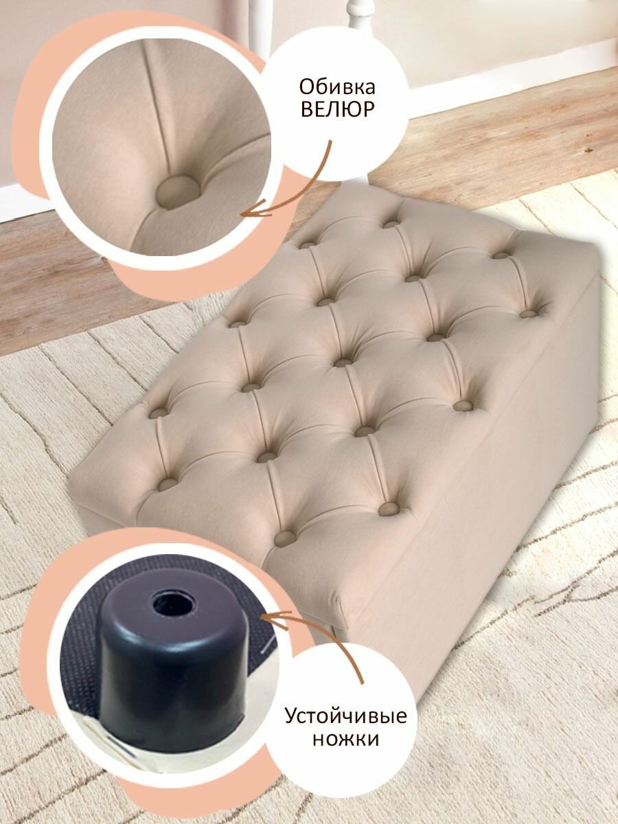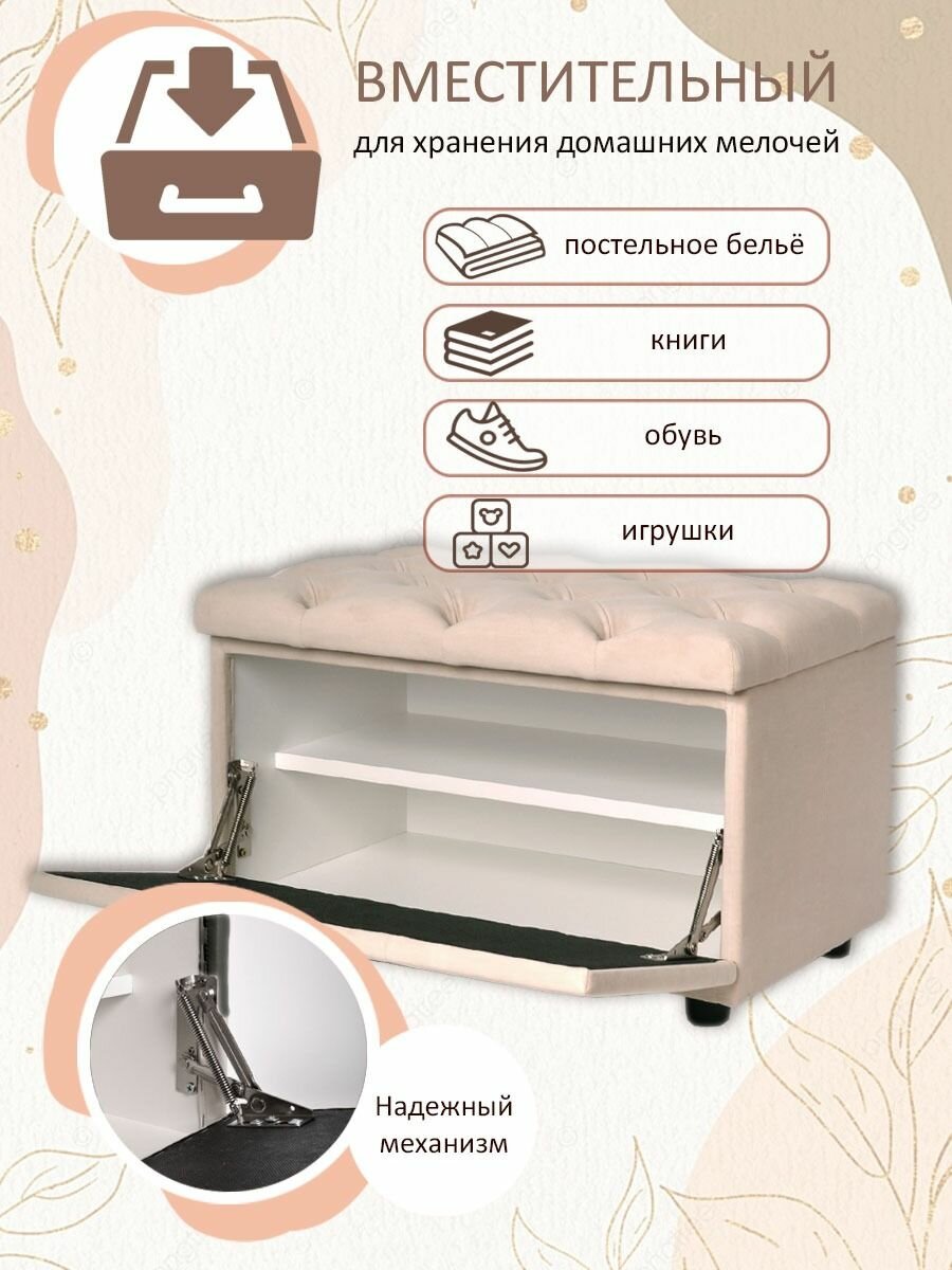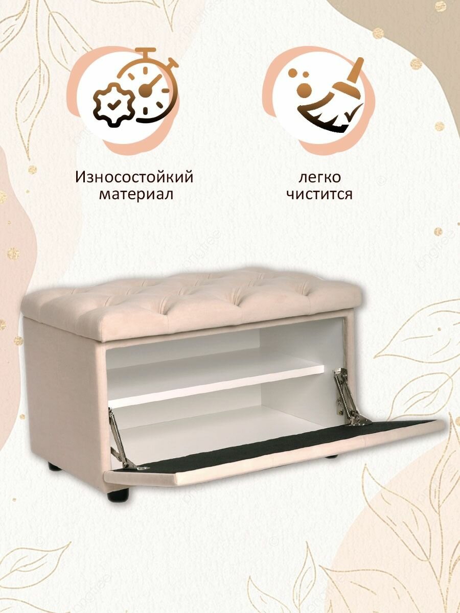 Обувница для прихожей с сиденьем закрытая / Пуф мягкий велюр / Банкетка в прихожую Бежевый 59.5*38.5*38 интересное: