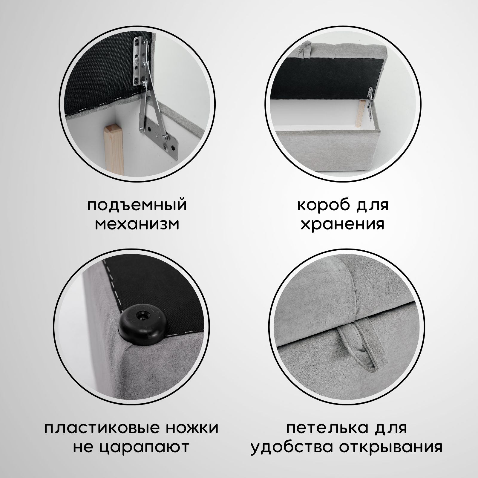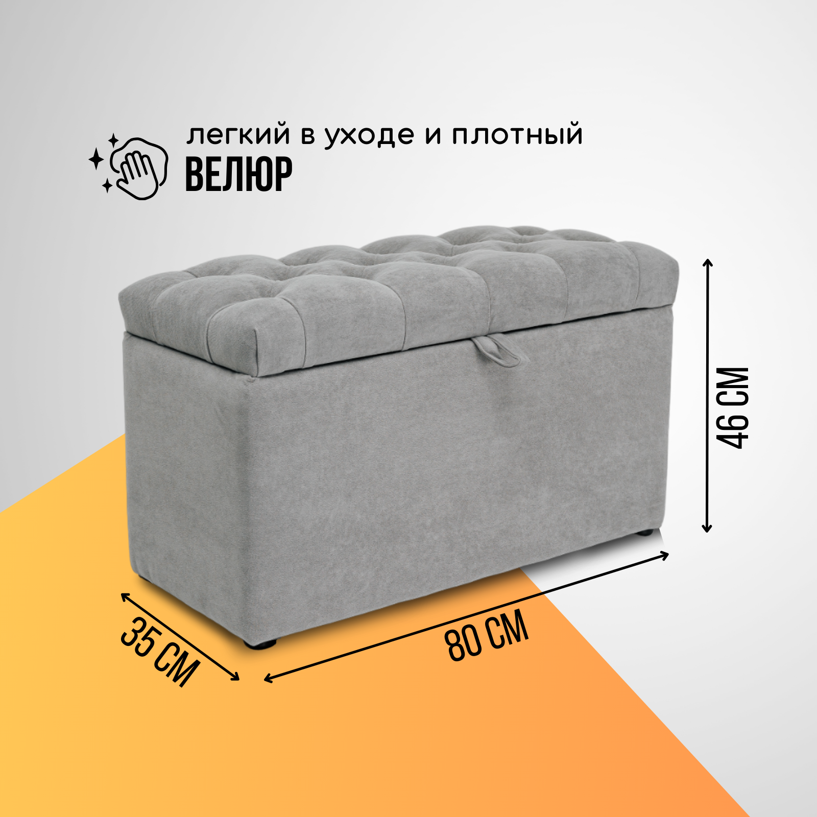 Пуф с коробом для хранения с каретной стяжкой 110 Brendoss, пуфик с ящиком, банкетка, цвет серый, износостойкий велюр интересное: