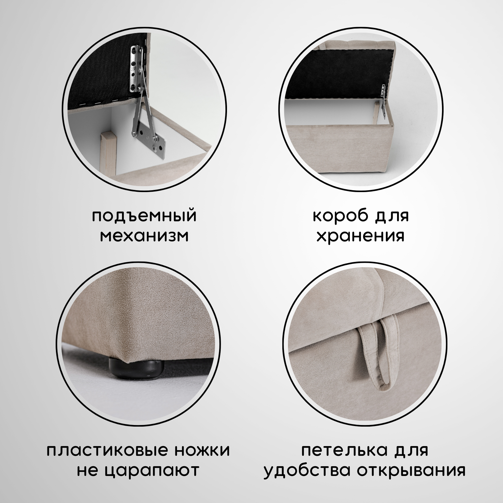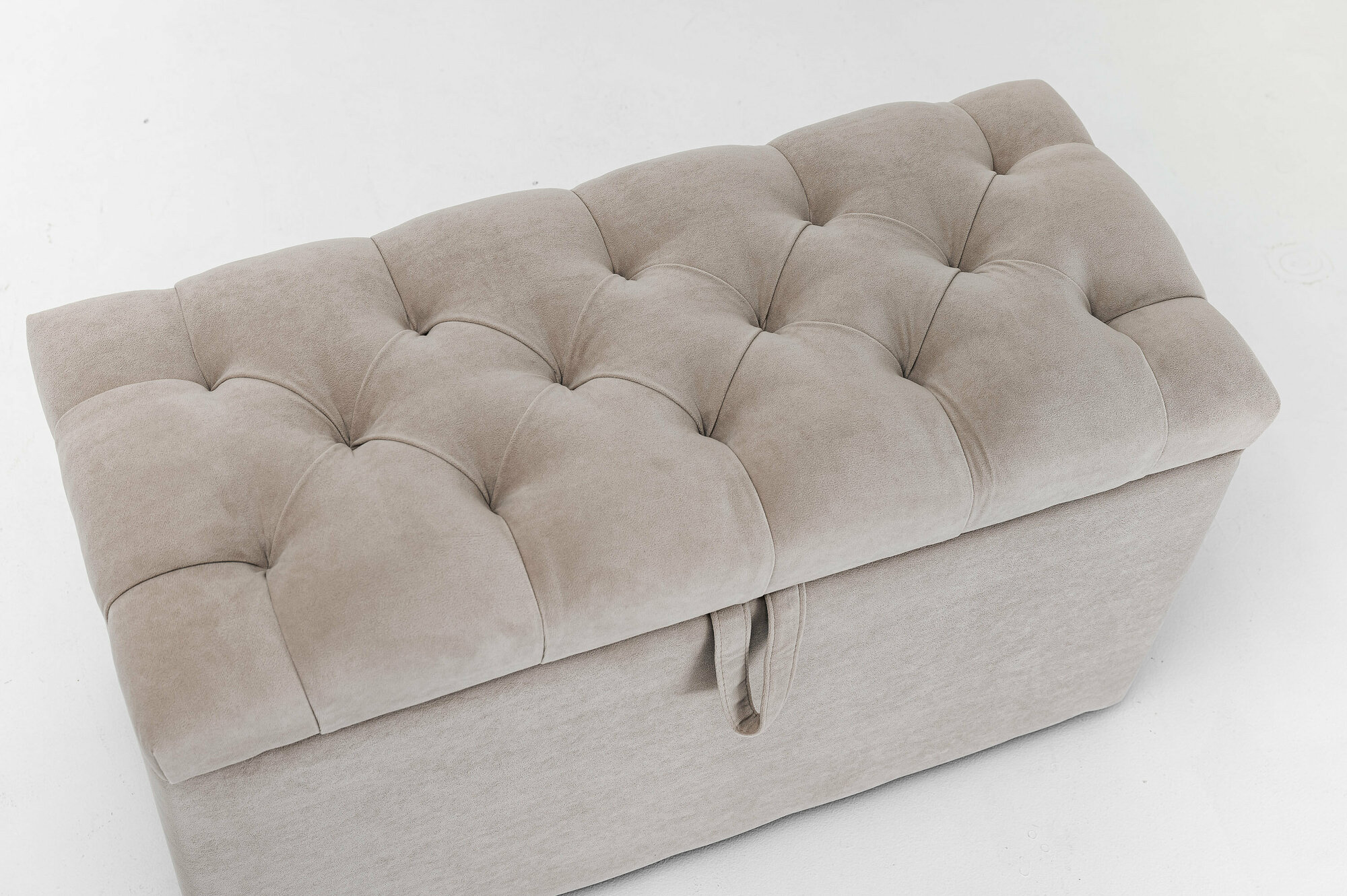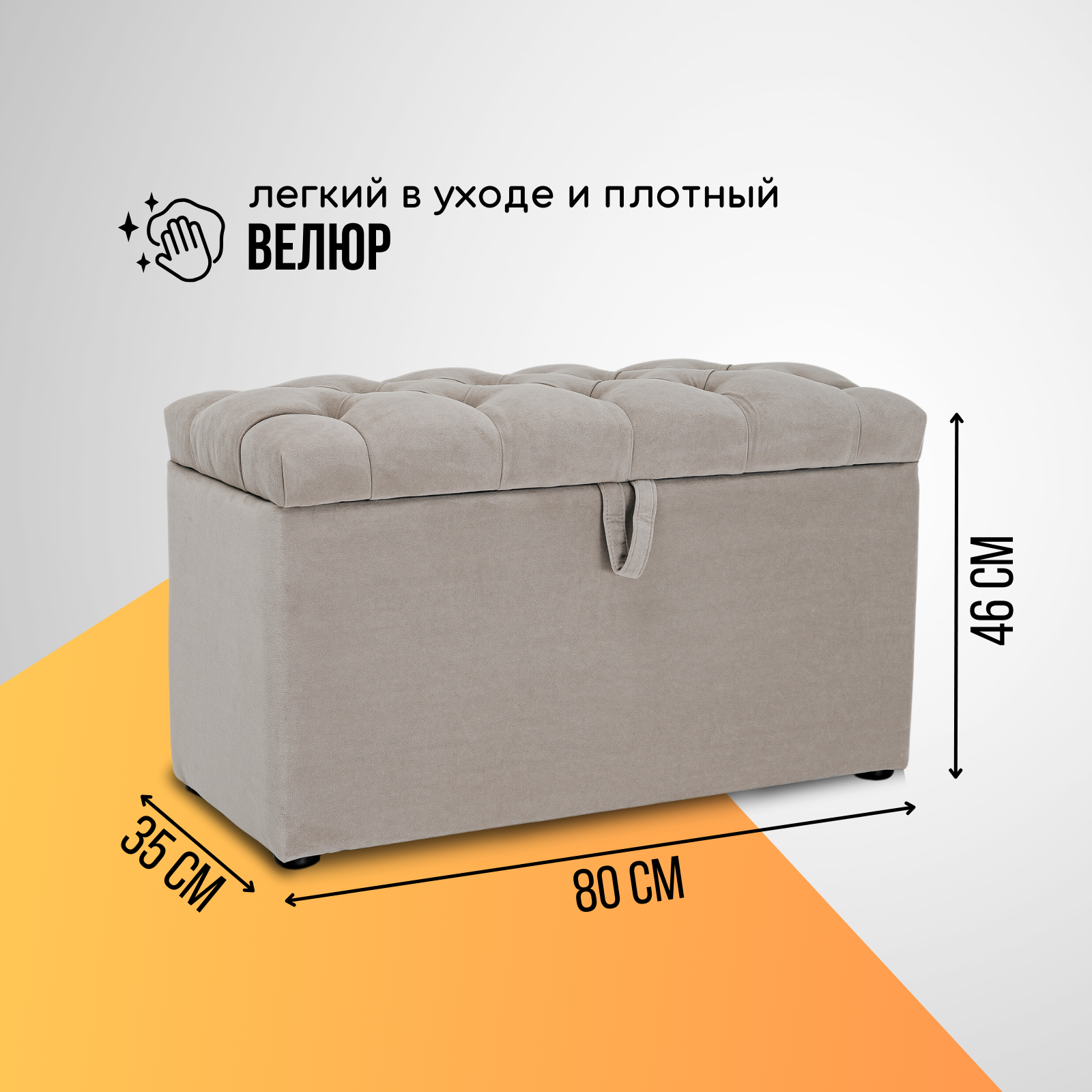 Пуф с коробом для хранения с каретной стяжкой 110 Brendoss, пуфик с ящиком, банкетка, цвет бежевый, износостойкий велюр интересное: