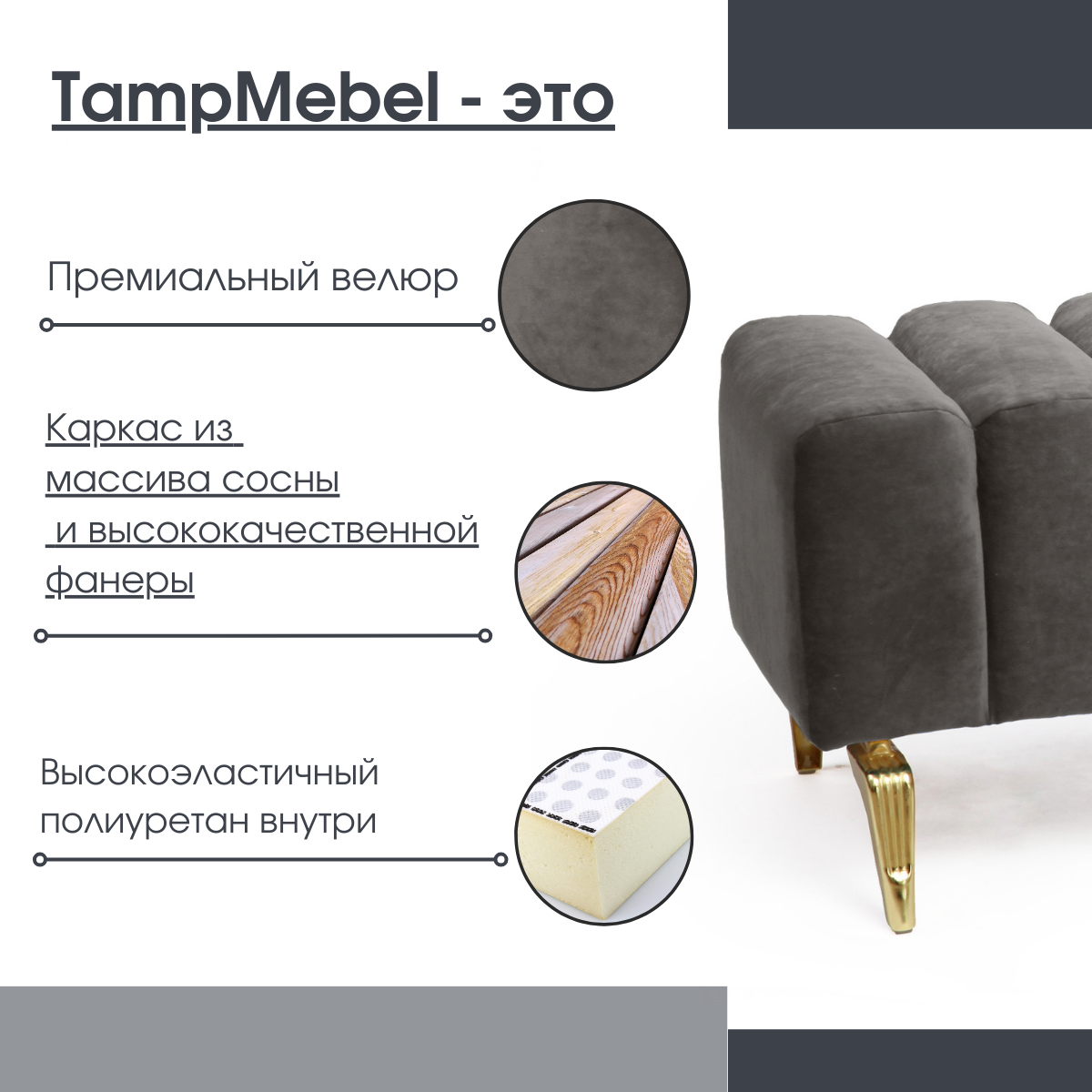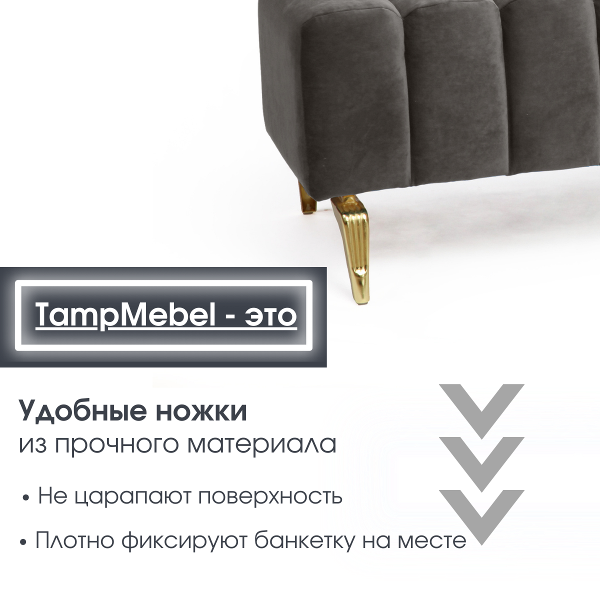 СохранитьБанкетка в спальню, пуфик для прихожей "Santorini" с изогнутыми ножками, ткань велюр, темно-серая интересное: